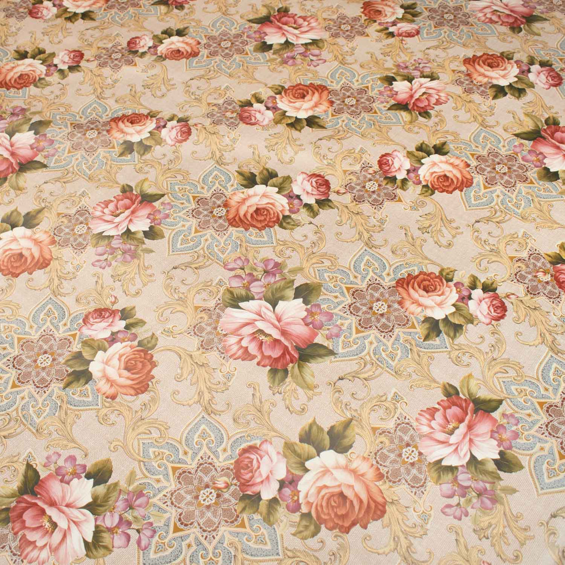 Pink & Beige Vintage Floral Plastic Tablecloth Fabric
