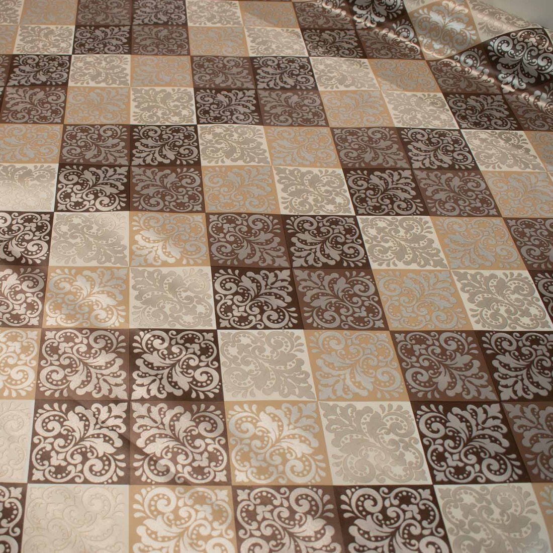 Brown Diamond & Flower Plastic Tablecloth Fabric