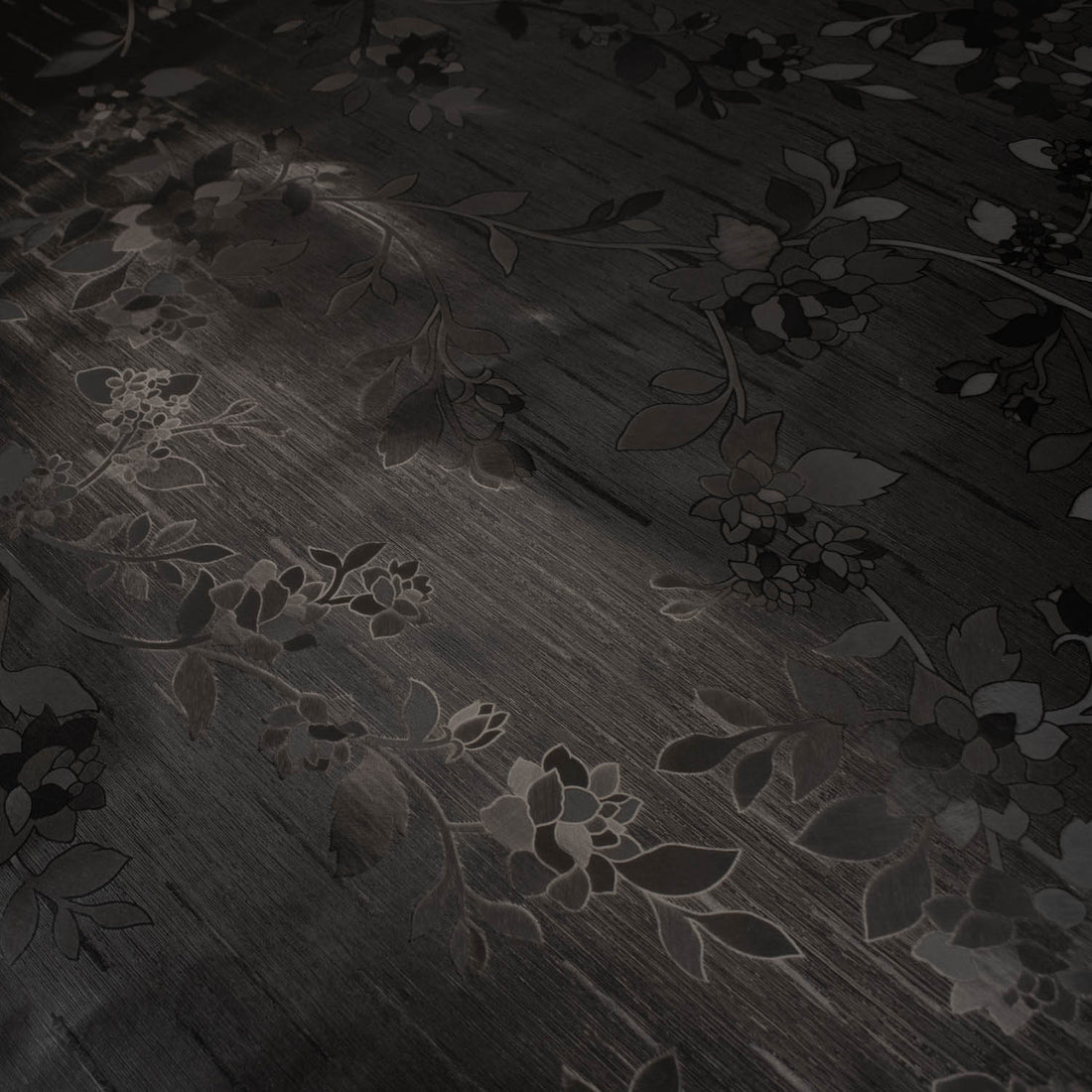 Black Floral Vines Plastic Tablecloth Fabric