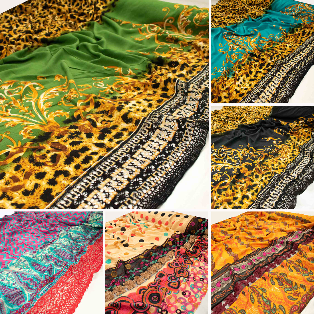 Content: 100% RayonWidth: 150CMWeight: 120GSM Our Printed Rayon with Lace Edge is a beautifully crafted...