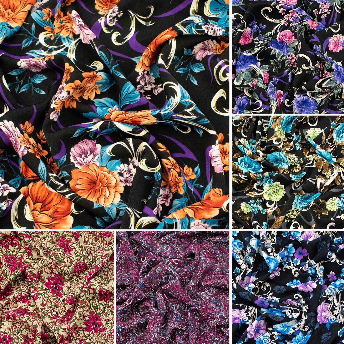Content: 100% RayonWidth: 150CMWeight: 120GSM Delightful florals, colorful geometrics, and abstract designs printed on a...