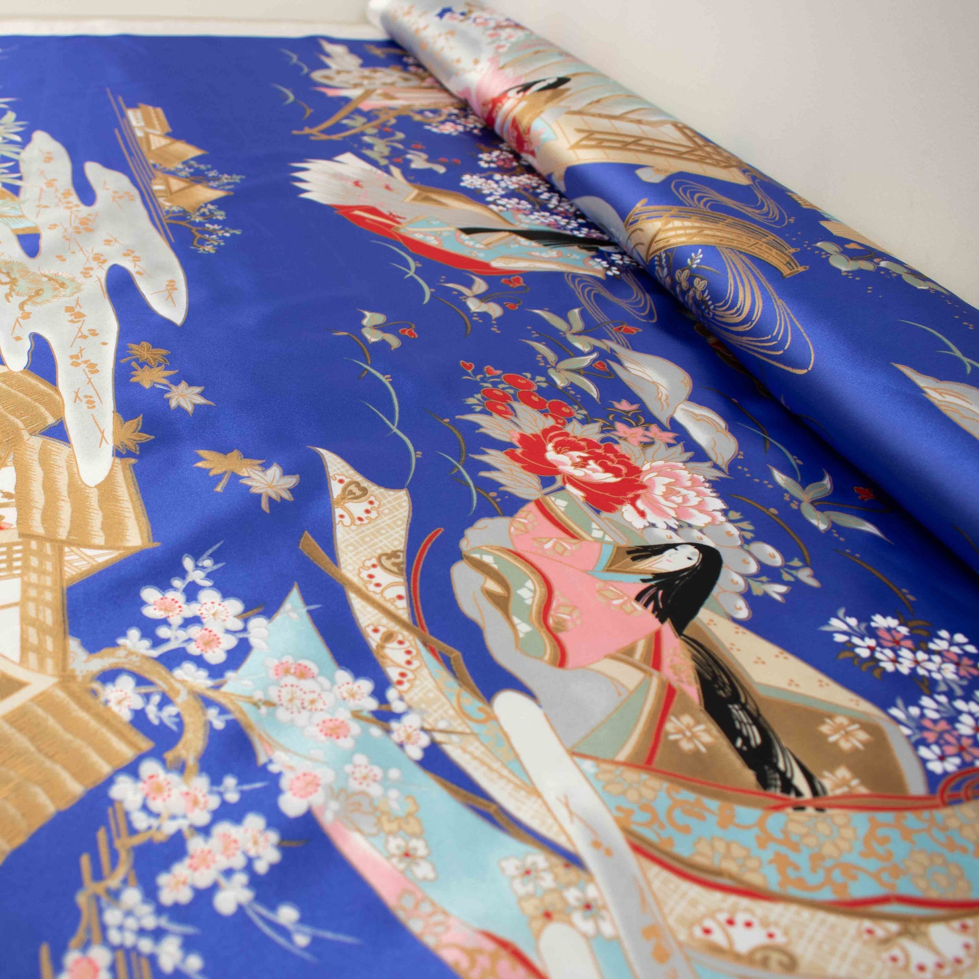 Japanese Ukiyoe Kimono Satin Prints is beautiful and soft, smooth, and shiny fabric. The printed satin drapes wonderfully and is perfectly suitable for making luxurious and flowing dresses, tops, and skirts. Our printed satin fabric is available in a range of floral, abstract, and many other amazing prints.