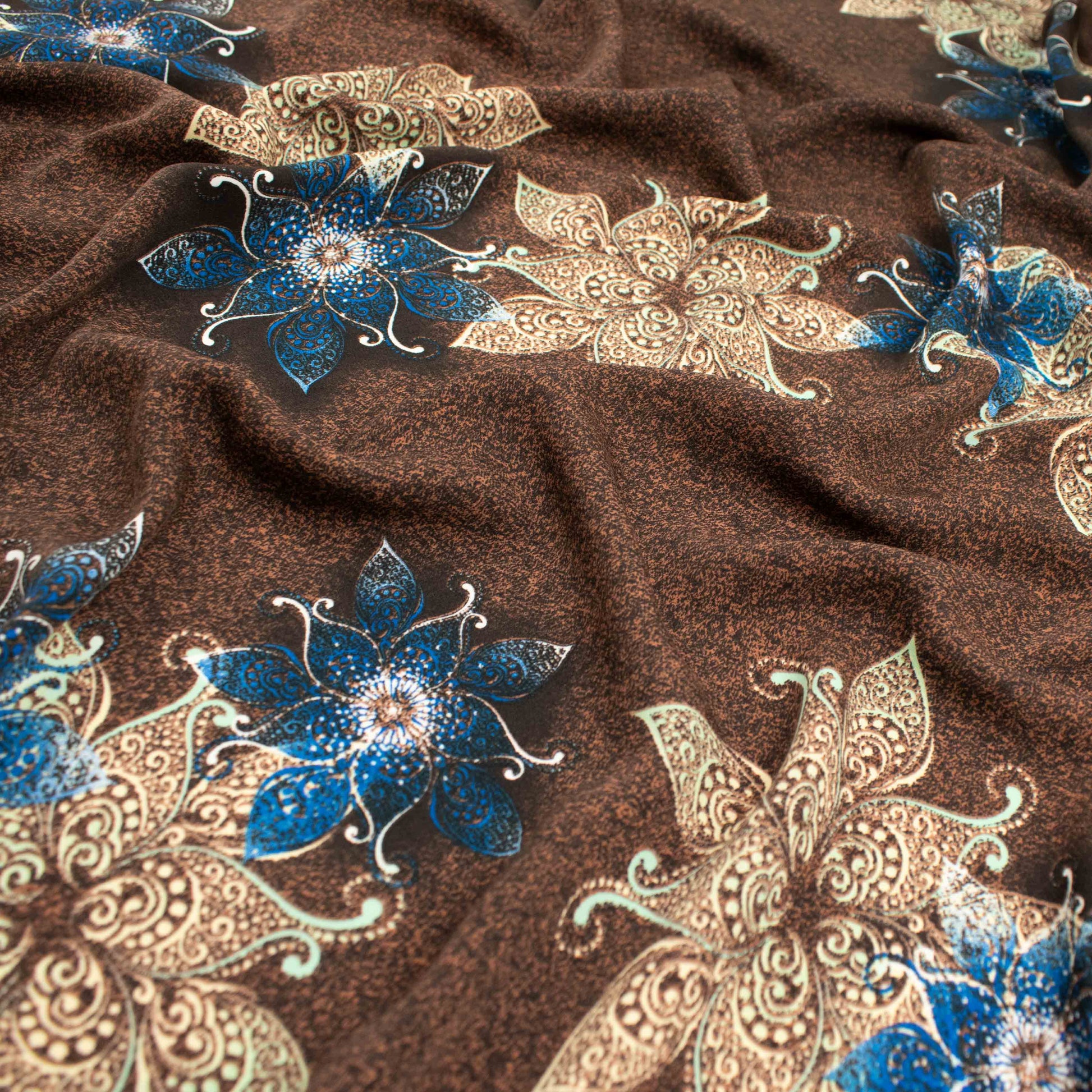 Fine Satin Prints Design-660 Navy & Ivory Abstract Floral on Brown