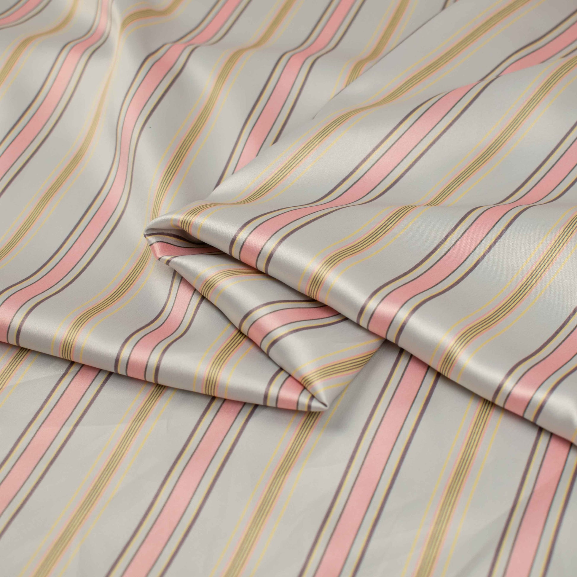 Printed Satin Design-28 Baby Pink Stripes on Silver