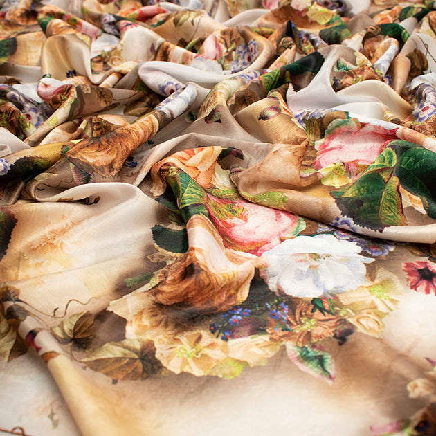 Digital Printed Satin Design-24 Floral Bloom on Beige
