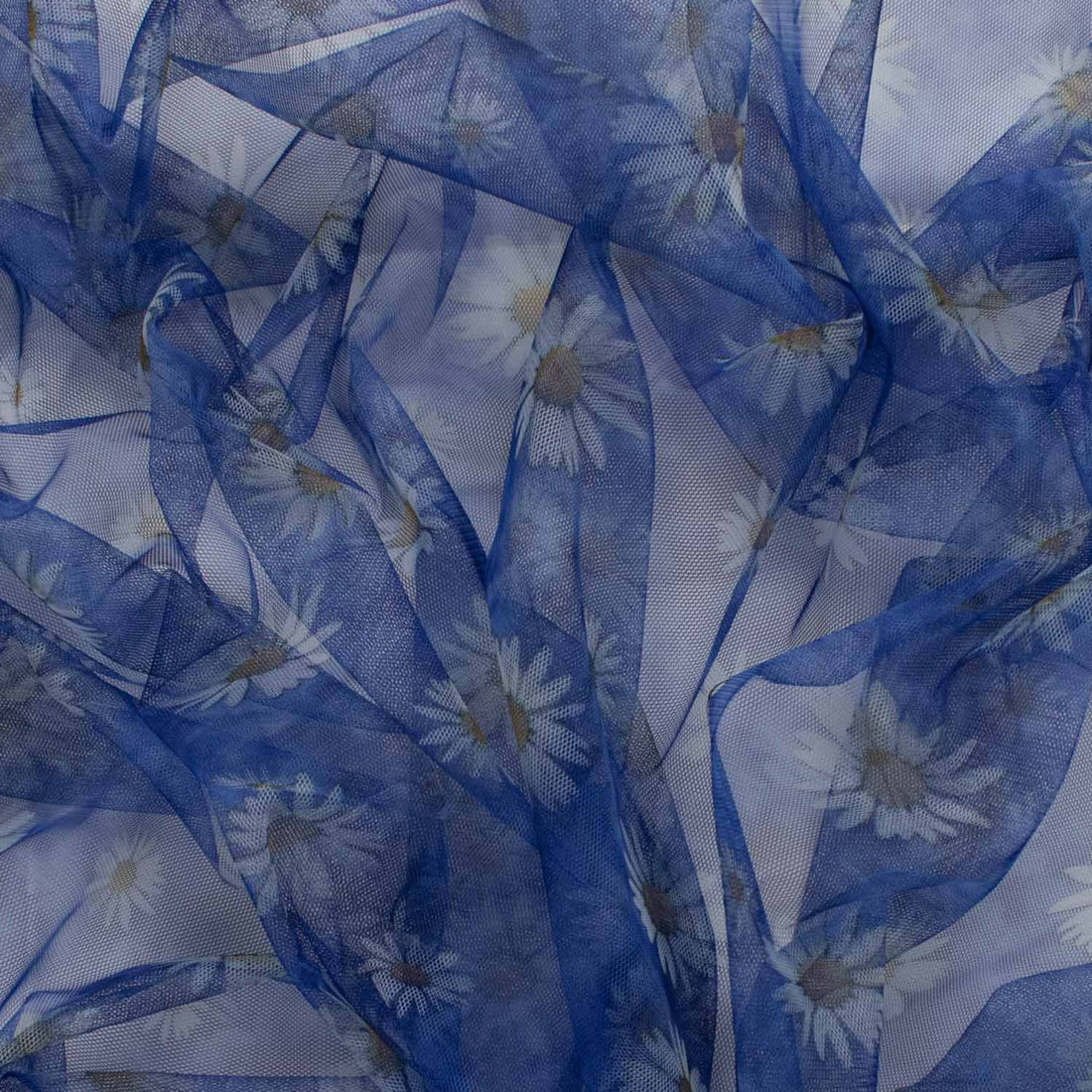 Digital Printed Tulle Blue & White Sunflower
