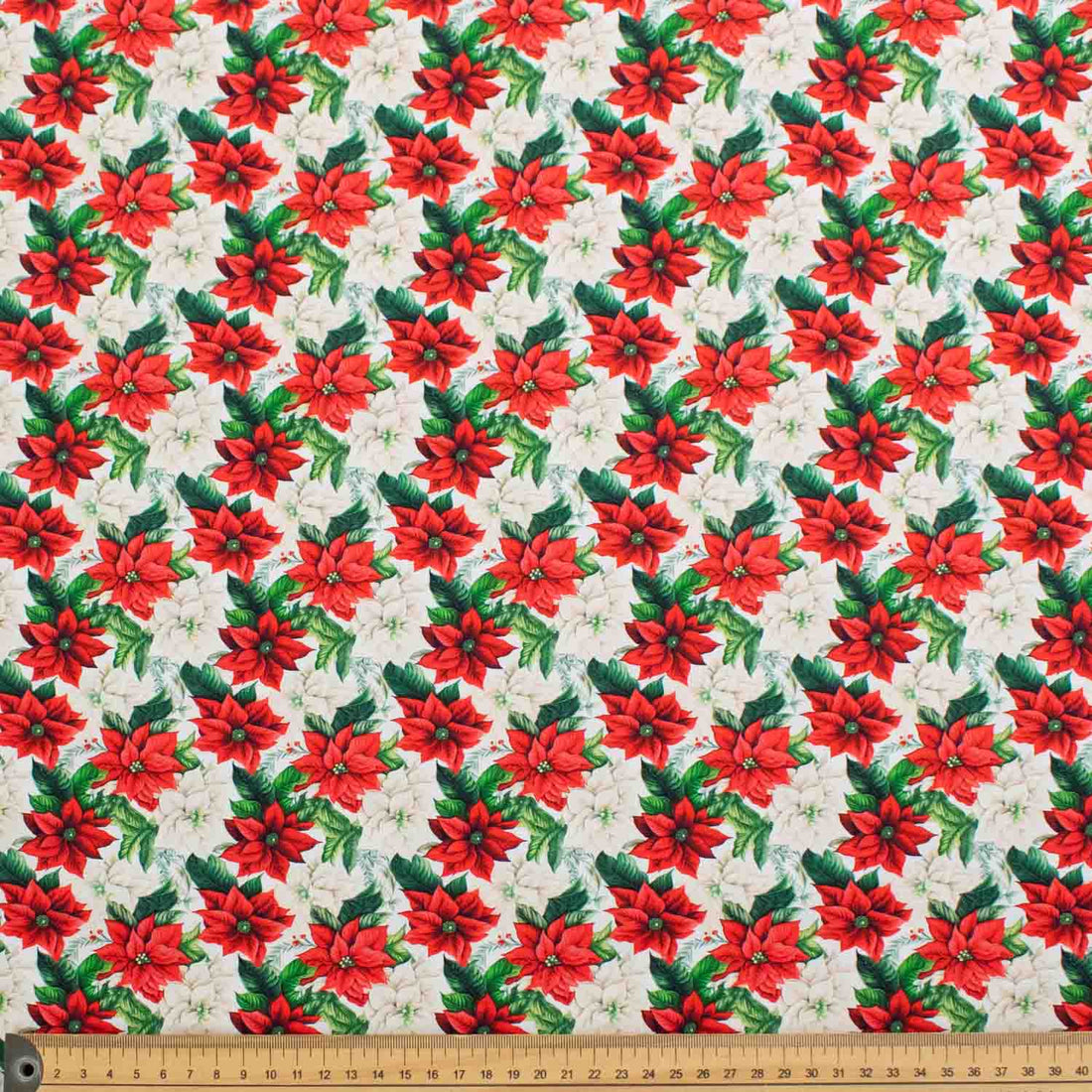 Red & White Poinsettia Flowers Christmas Cotton Prints