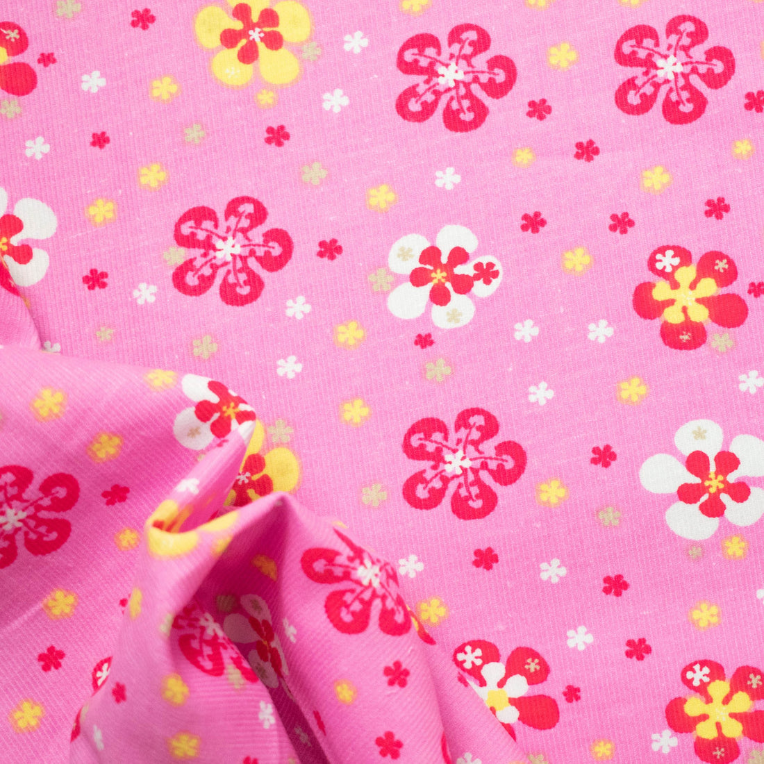 Cotton Corduroy Prints Design 6 Pink & Yellow Florals