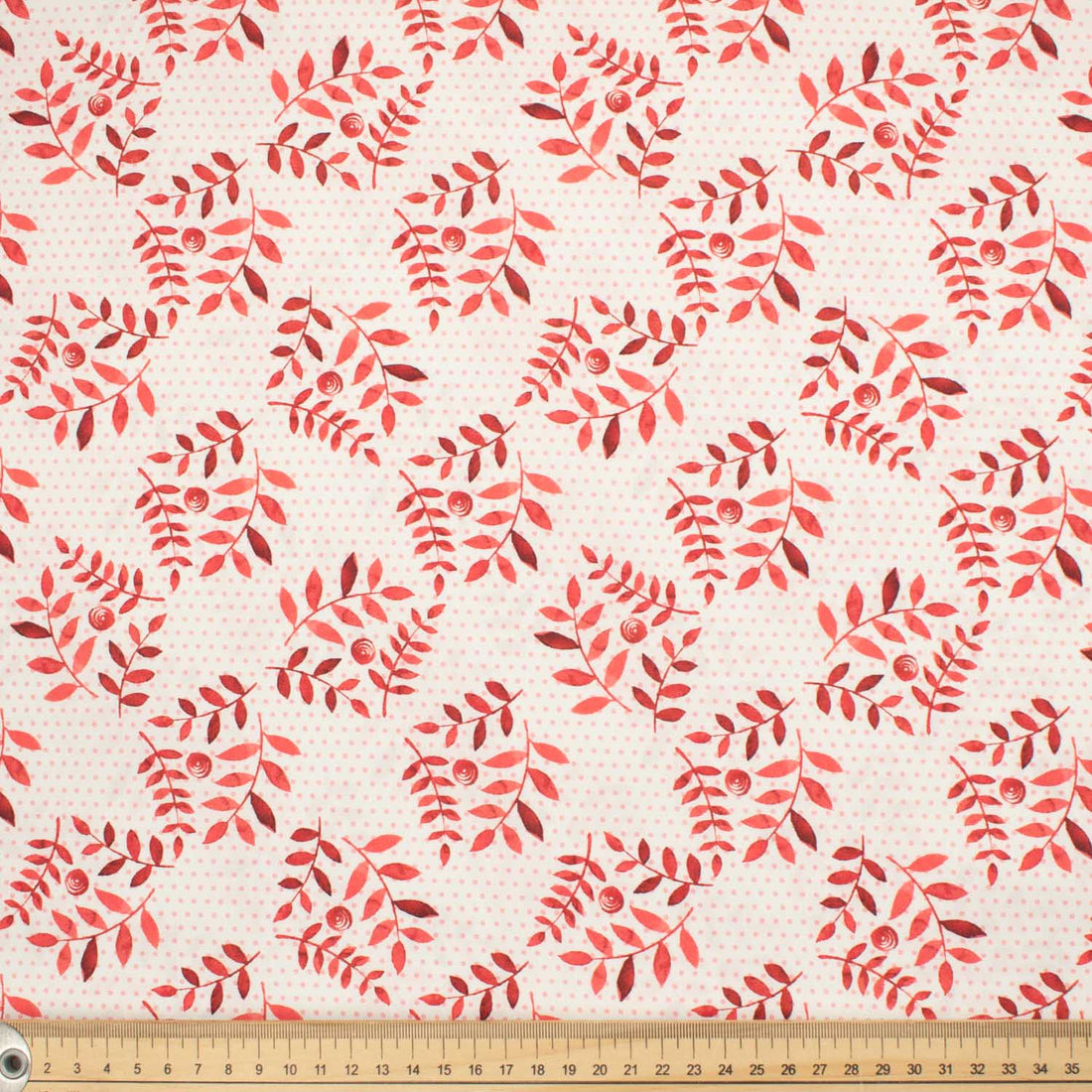 Provence Collection #05 Red Leaves & Micro Dot on White Cotton Prints