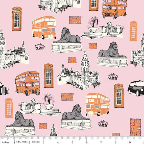 Riley Blake Designs British Invasion London Scenes Bus Pink Cotton Prints