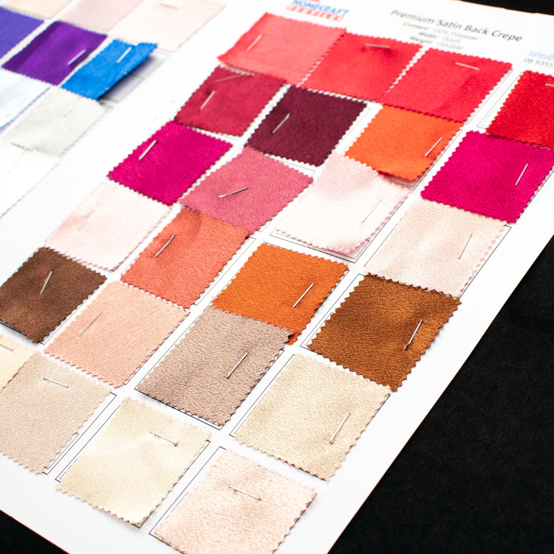 Our premium satin back crepe is a luxurious fabric, with a sateen finish on one side and a crepe effect on the other. It can be used on either side. This medium-weight satin has a beautiful lustre and drapes well. Perfect for use on its own or as an underlay for lace garments. Our range consists of 60 colors to cover all your fashion requirements.