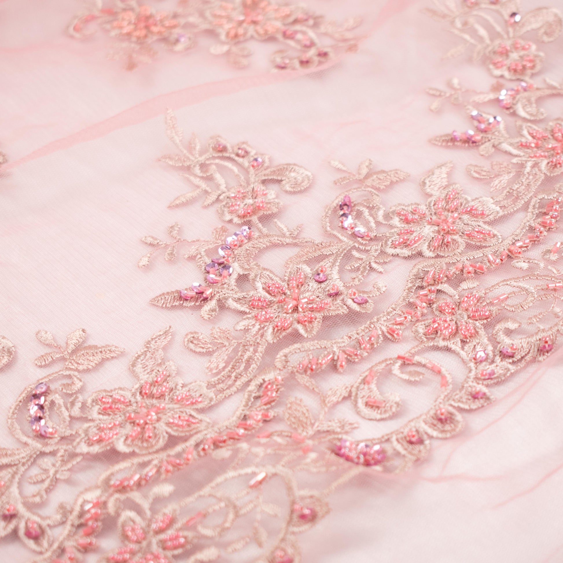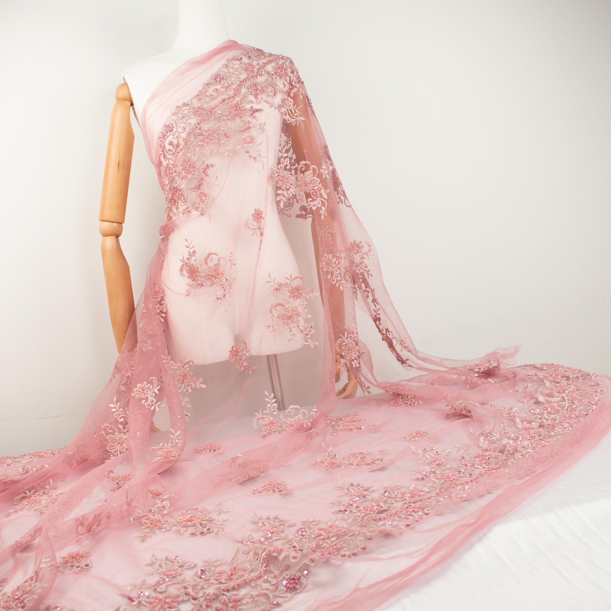 Beaded Sequin Embroidered Lace Dusty Pink 150CM Wide
