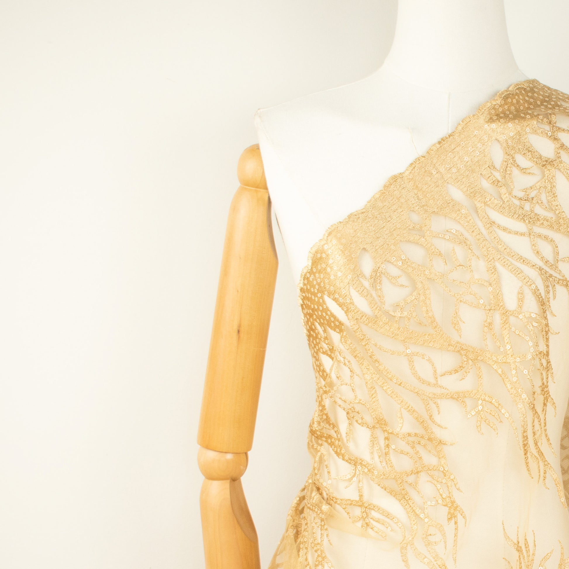 Sequin Coral Embroidered Lace Gold 130CM Wide