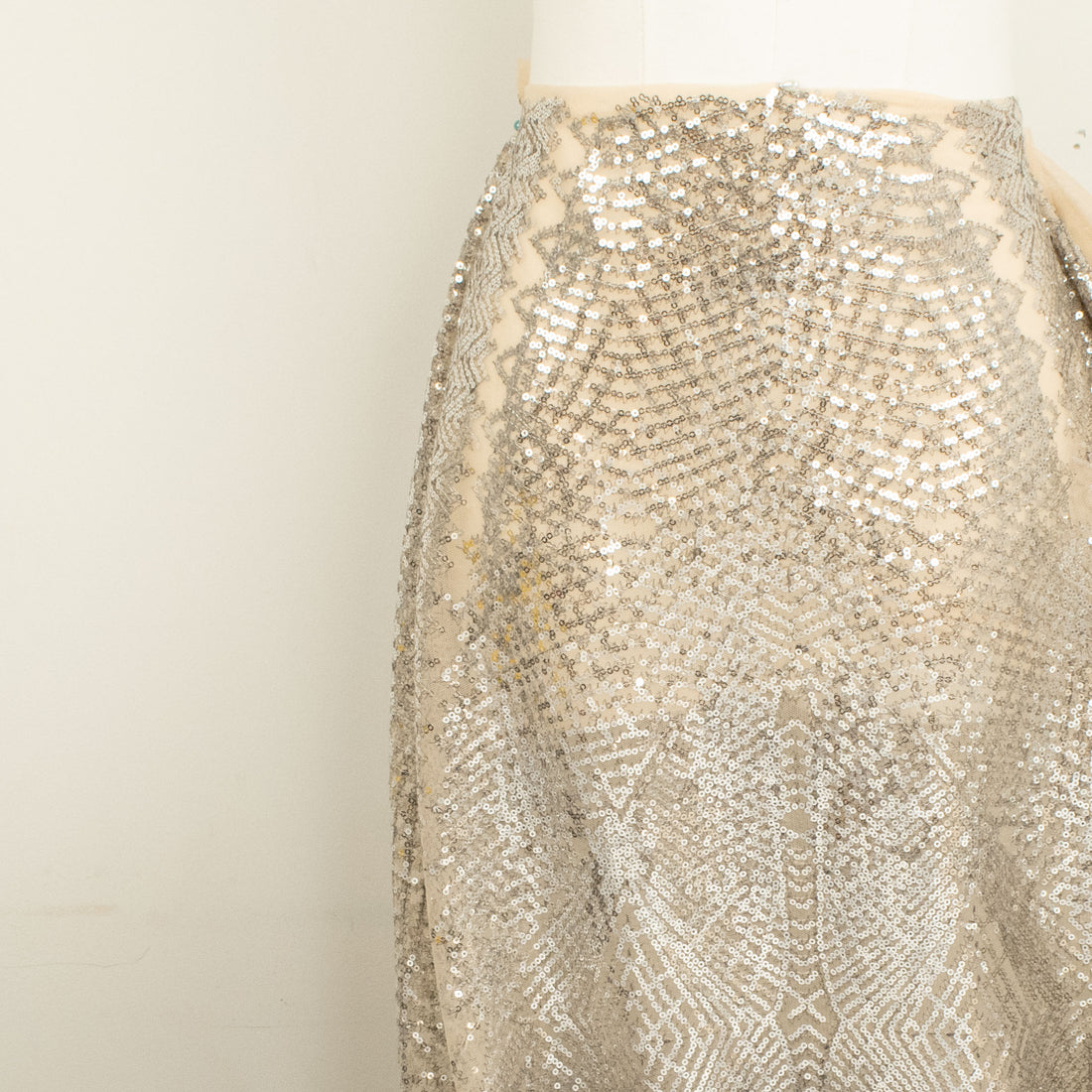 Width: 135cmContant: 100% Polyester A beautiful collection of sequins mesh lace which includes heavily sequinned geometric...