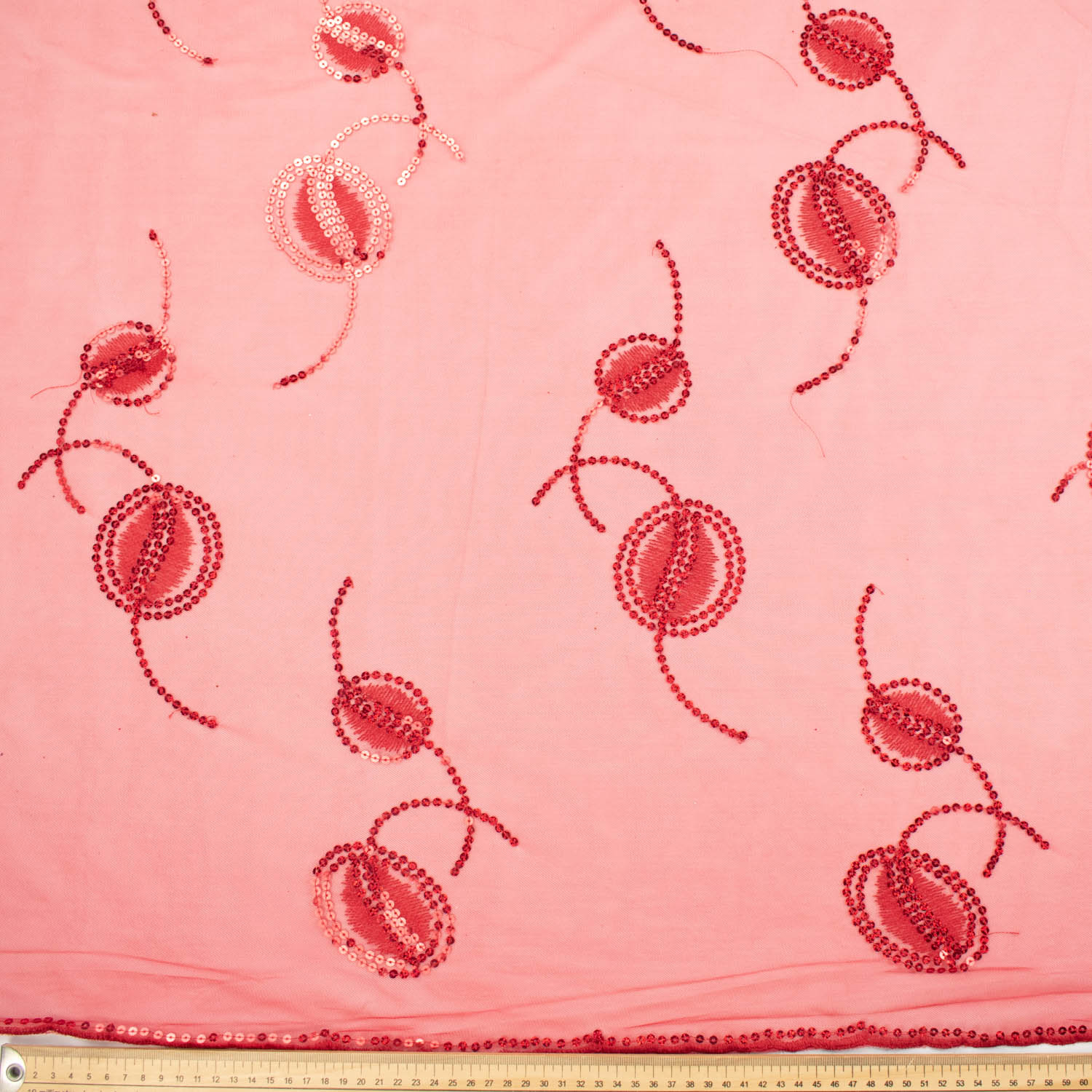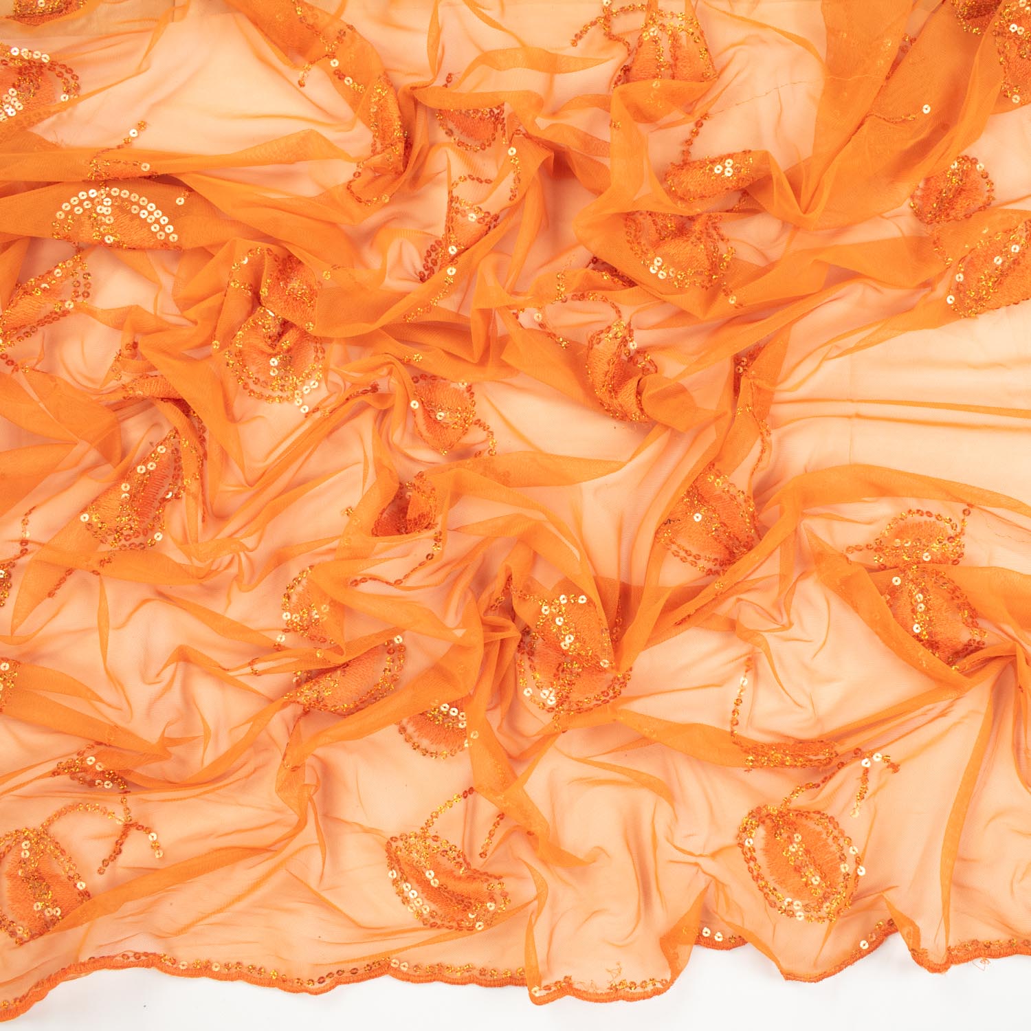 An embroidered sequin on a soft tulle mesh open background. Reminiscent of the opulent colors and intricate patterns of the orient this sequenced lace would be a perfect choice for dance costumes and cocktail wear. The tulle mesh background enables the lace to give a soft, floaty drape to your garment.