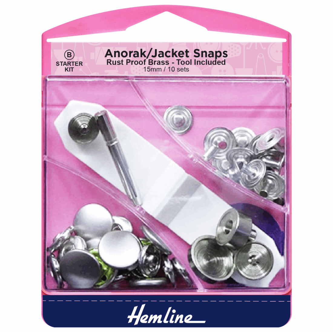 Hemline Anorak/Jacket Snaps With Tool Nickel - 15mm - Set of 10