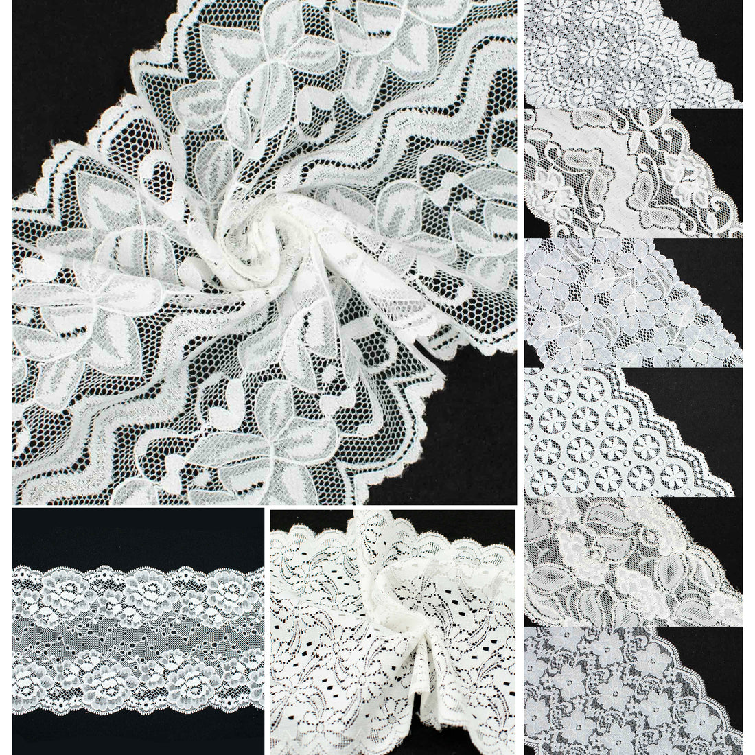 White Floral Stretch Raschel Lace Trim 165mm