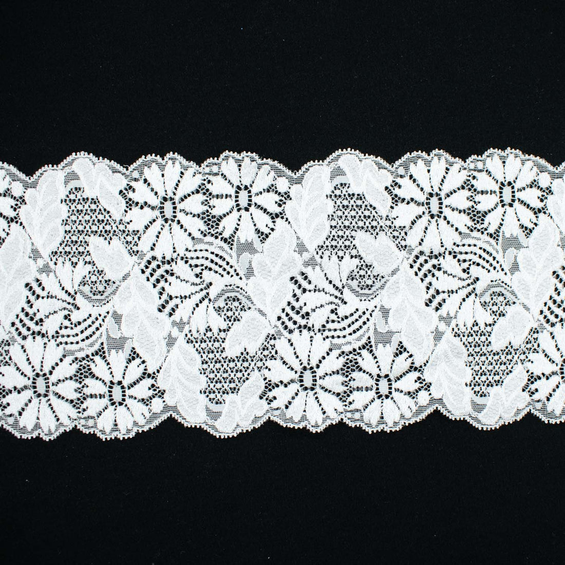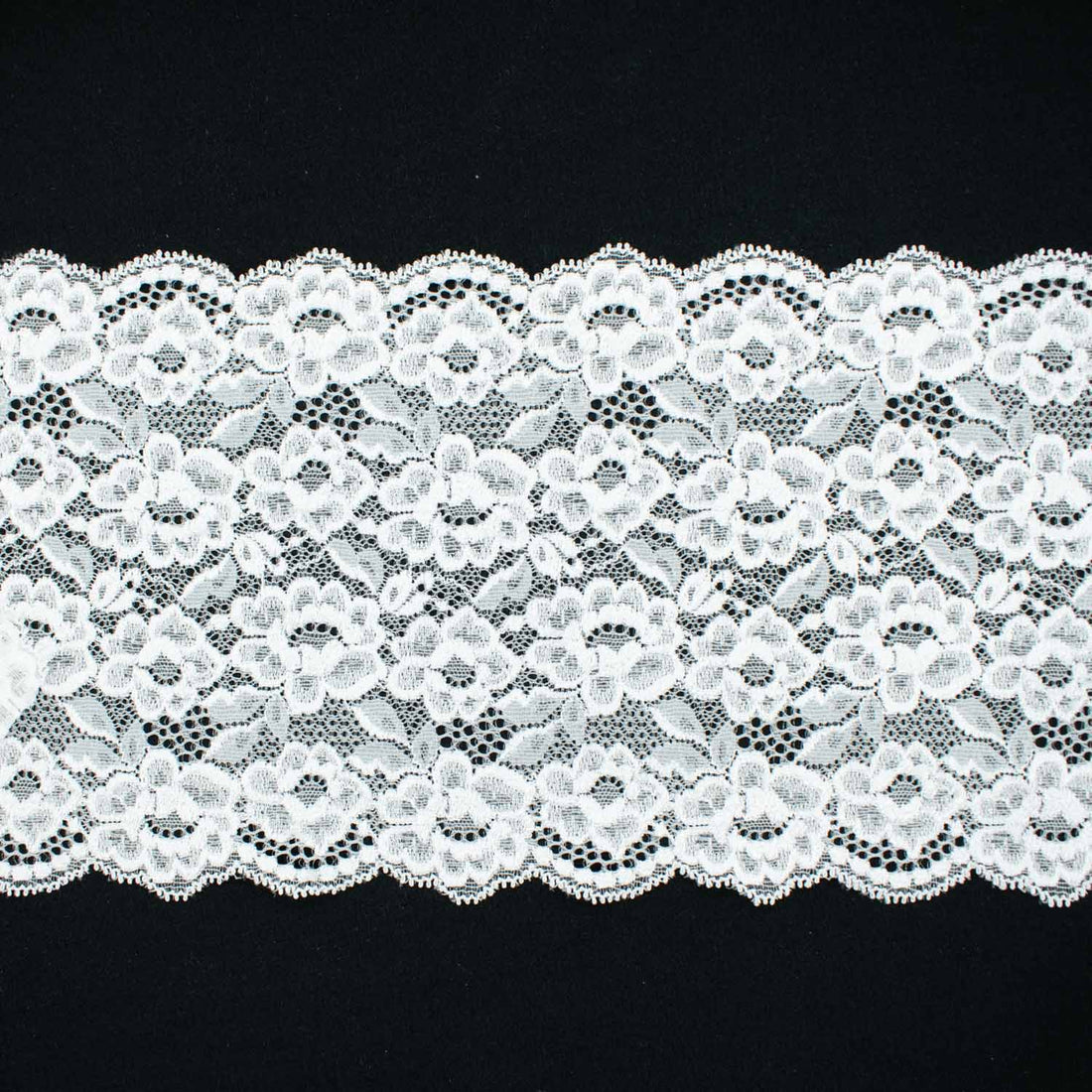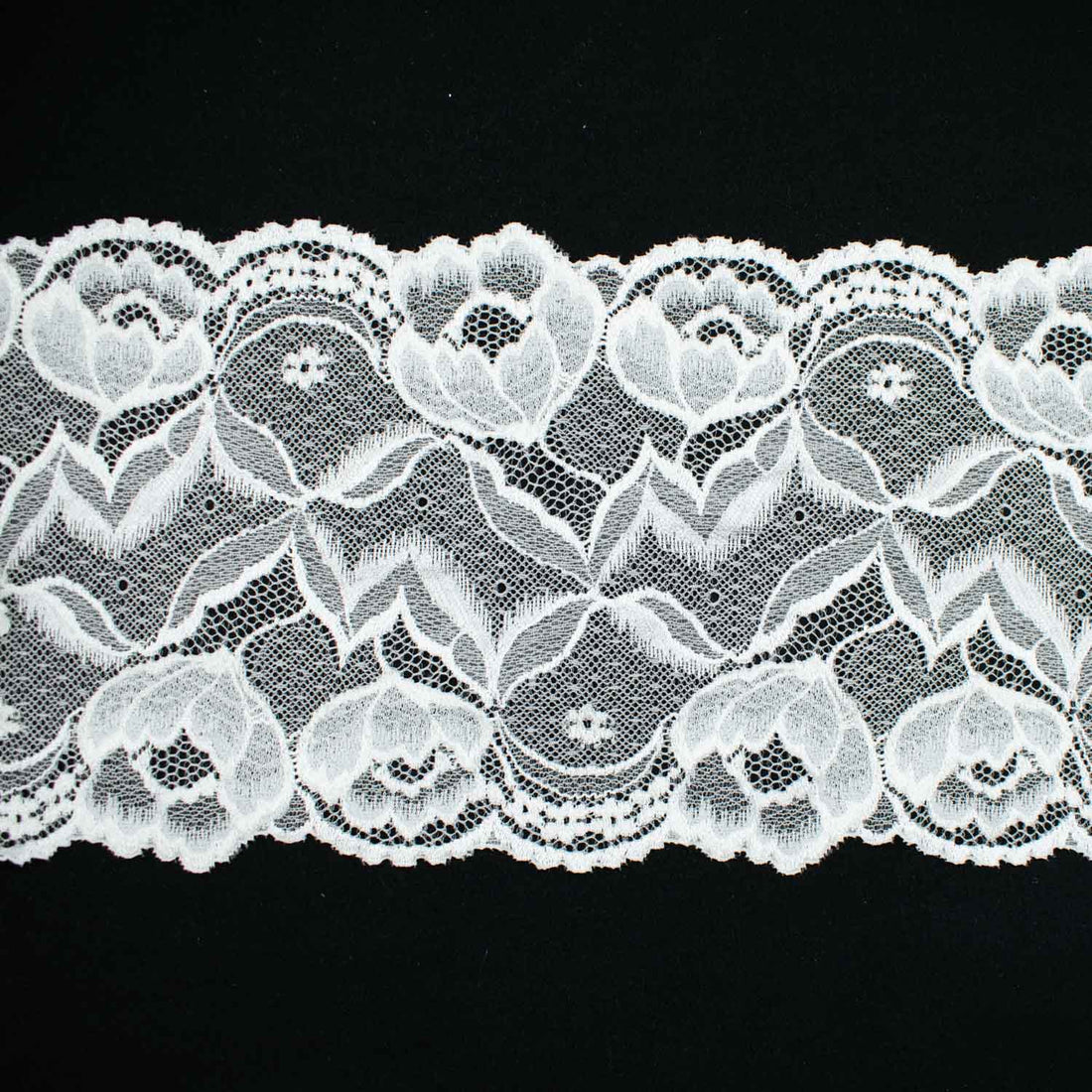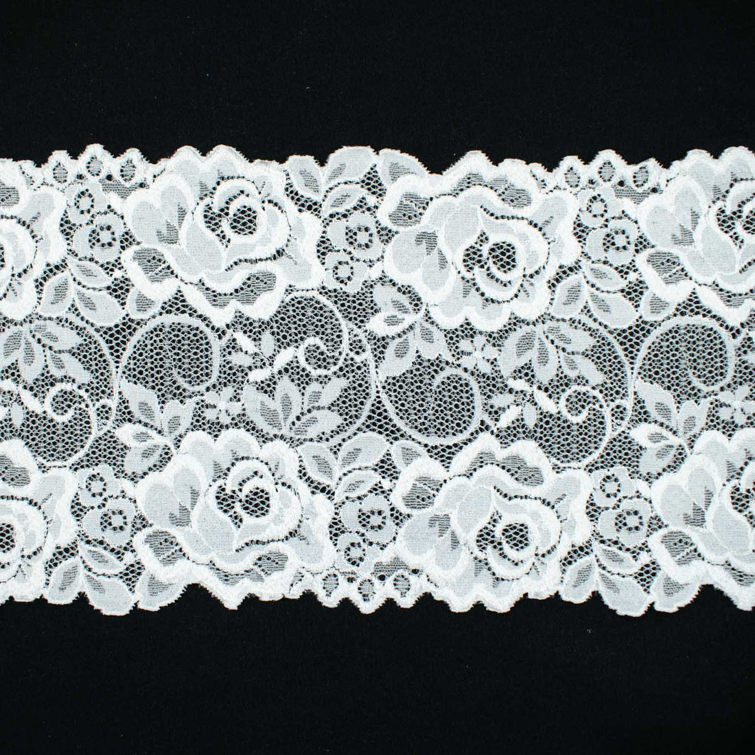 White Floral Stretch Raschel Lace Trim 150mm