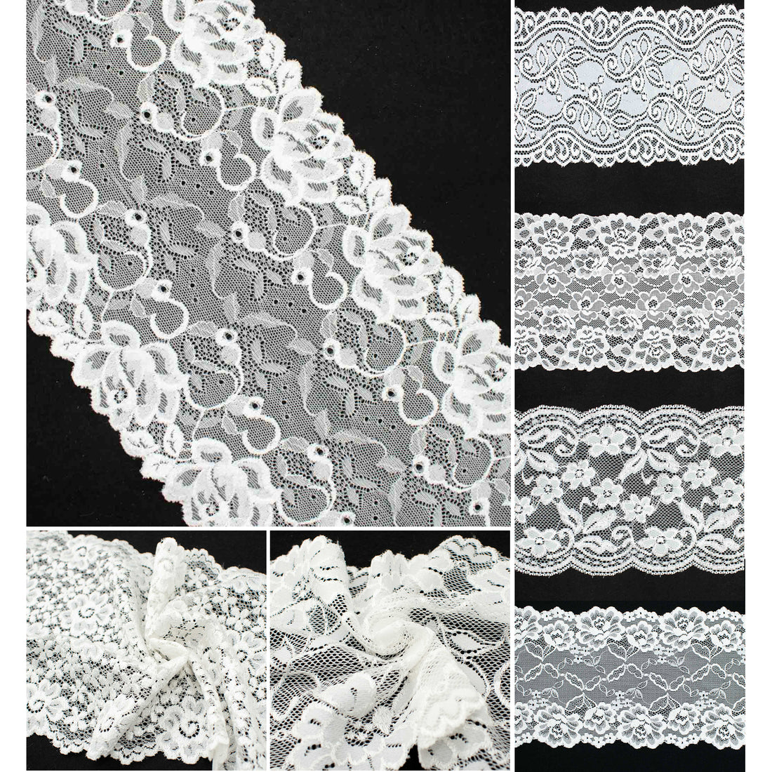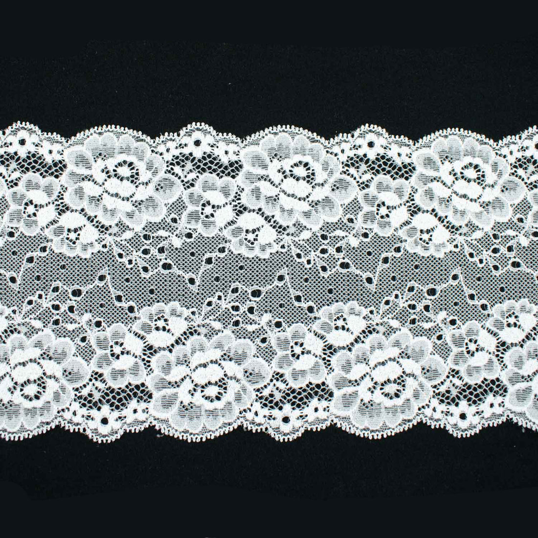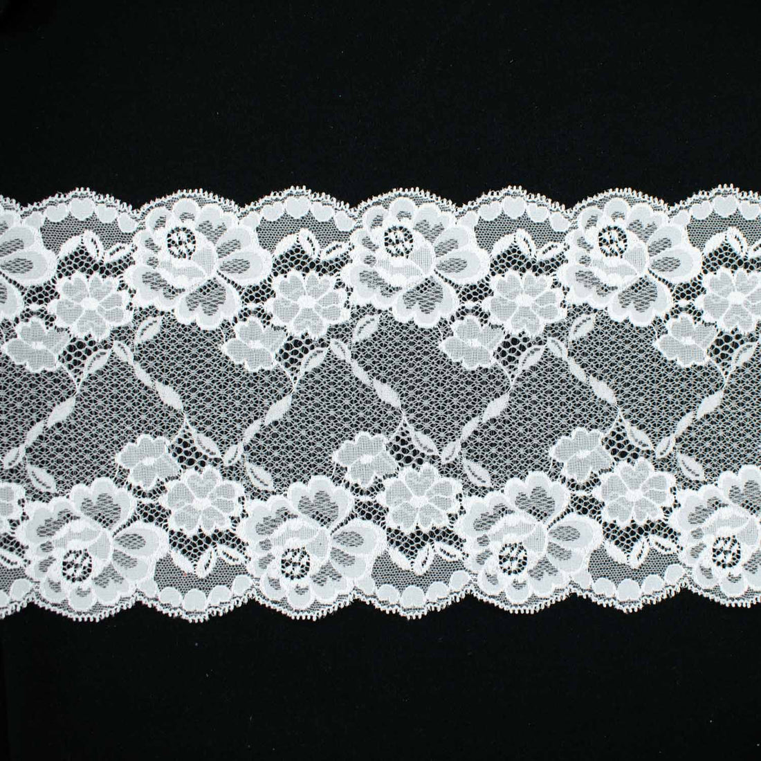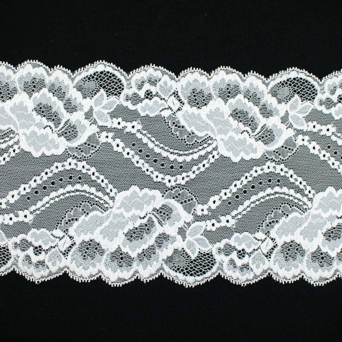 White Floral Stretch Raschel Lace Trim 150mm