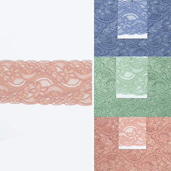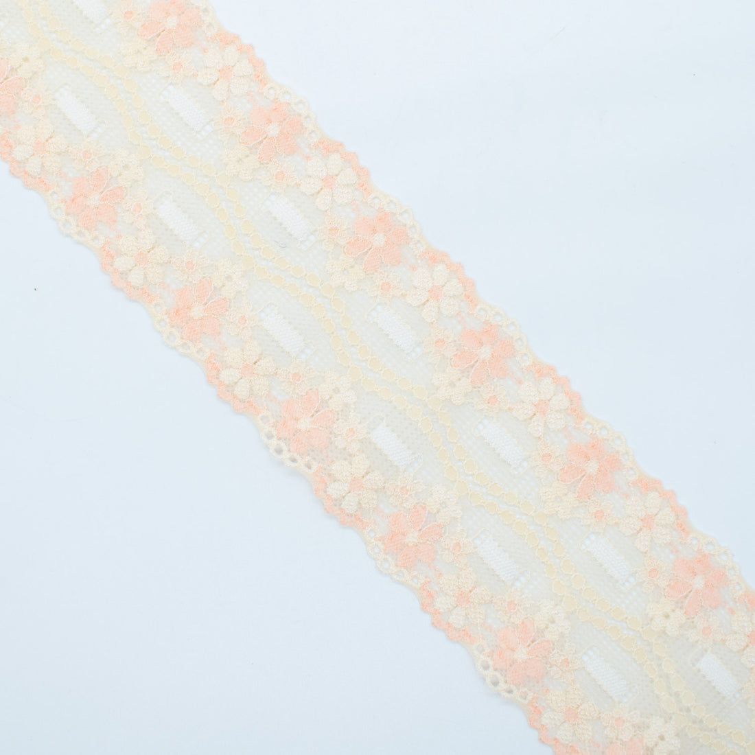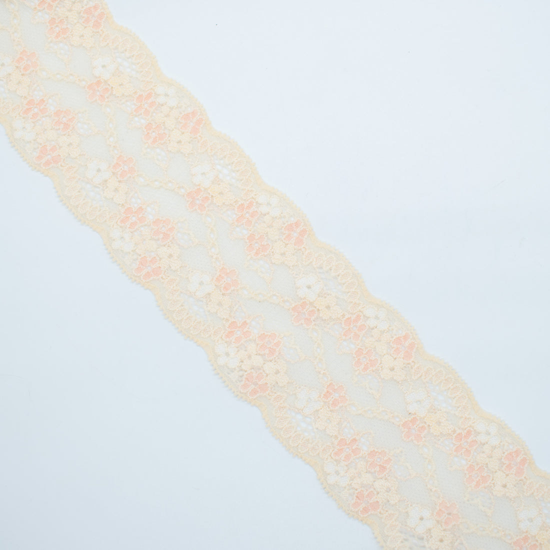 Floral Stretch Raschel Lace Trim 70mm Design-T8 Coral & Skin