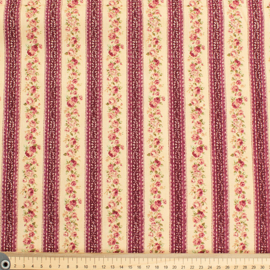 Stof Fabrics Roses-2 Floral on Cream & Red Stripes Cotton Prints