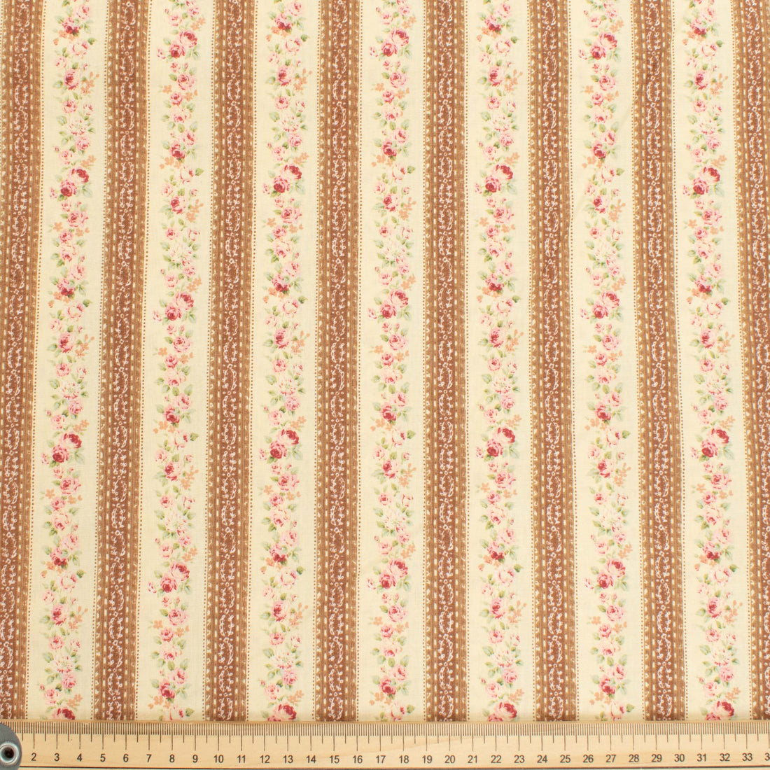 Stof Fabrics Roses-3 Floral on Cream & Latte Stripes Cotton Prints