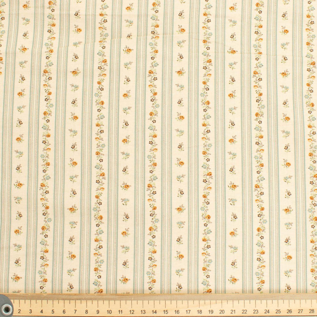 Stof Fabrics Roses-6 Floral Stripes on Cream Cotton Prints