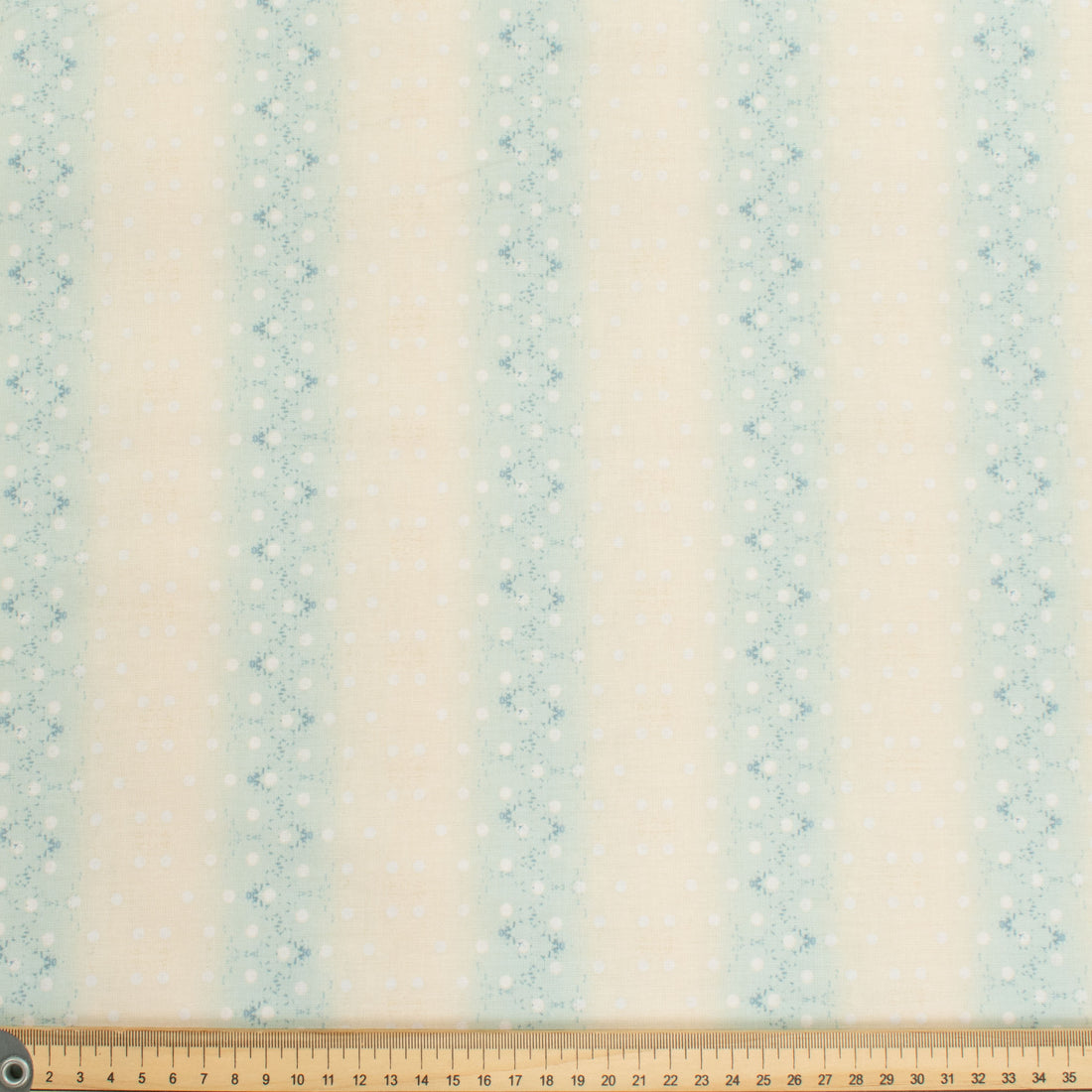 Stof Fabrics Roses-8 Shaded Turquoise Stripe on Cream Cotton Prints