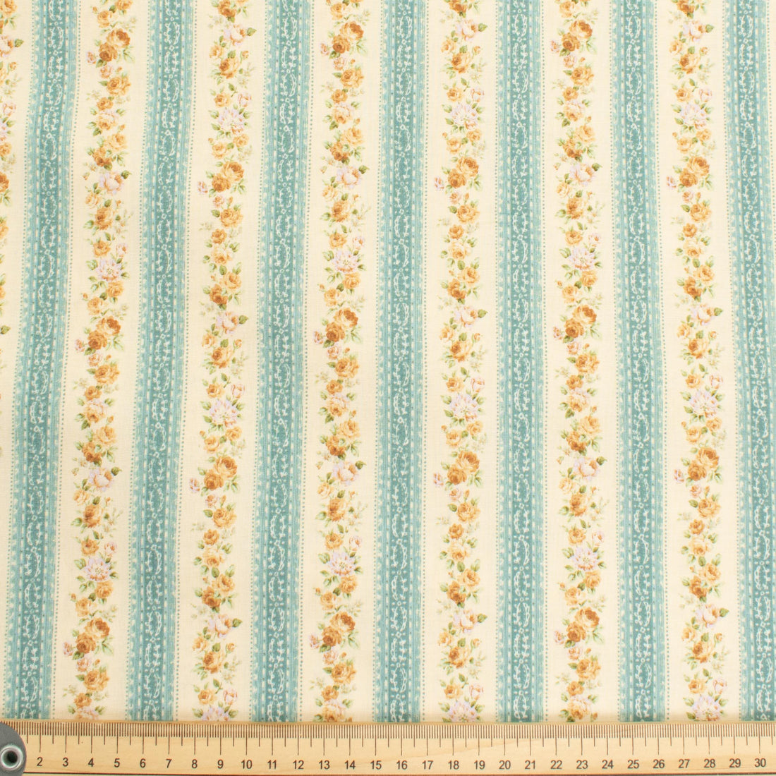 Stof Fabrics Roses-7 Floral on Cream & Turquoise Stripes Cotton Prints