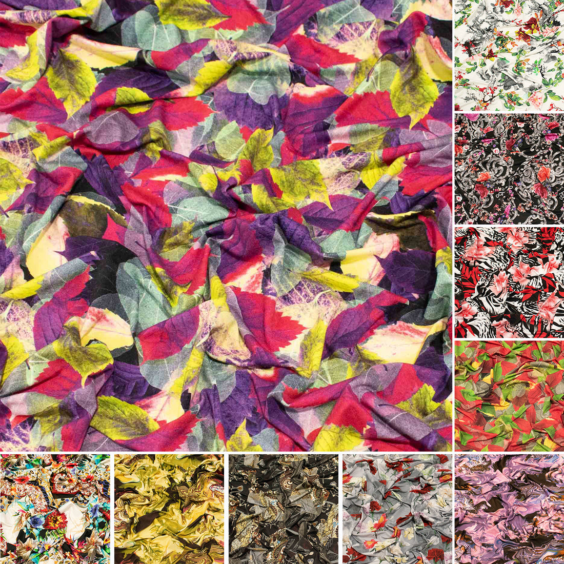 Content: 100% PolyesterWidth: 112CMWeight: 110GSM A beautiful selection of 112cm wide printed smooth peach crepe/faille in assorted florals, abstracts and...