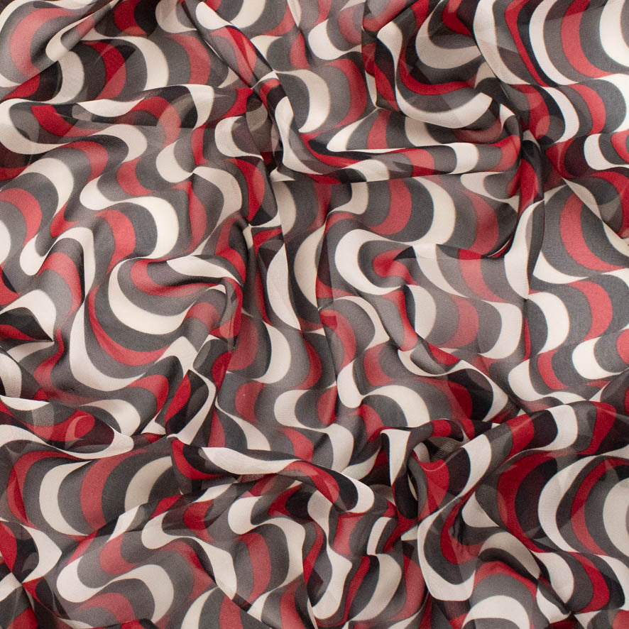 Printed Chiffon Design-243 Black & Red Vintage Retro Wavy