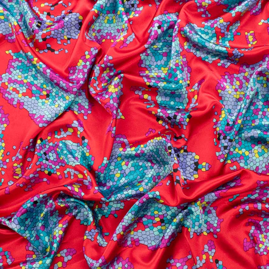 Satin Prints Design-205 Multicolor Mosaic on Red