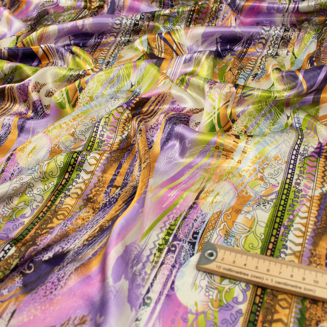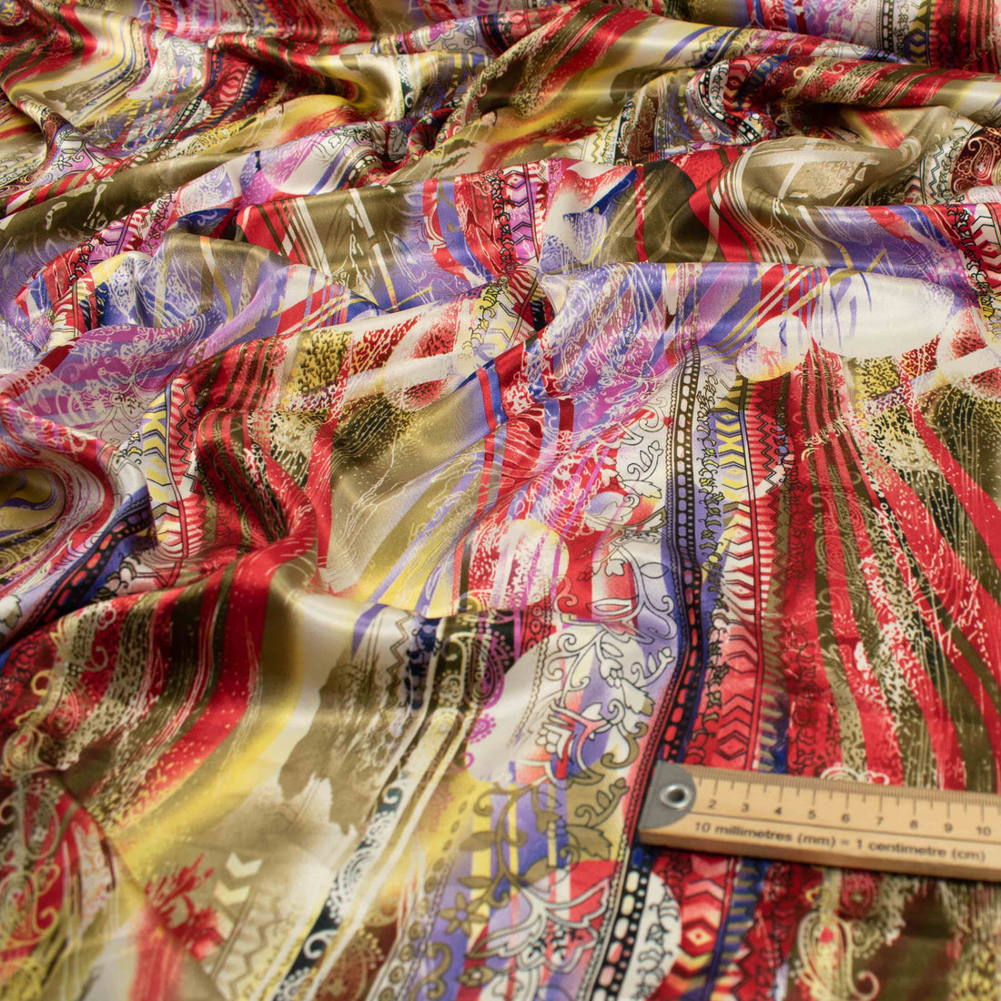 Printed Satin Design-55 Red, Purple & Gold Abstract