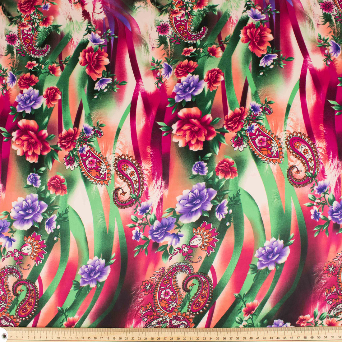 Printed Satin Design-61 Purple Flowers & Hot Pink Paisley