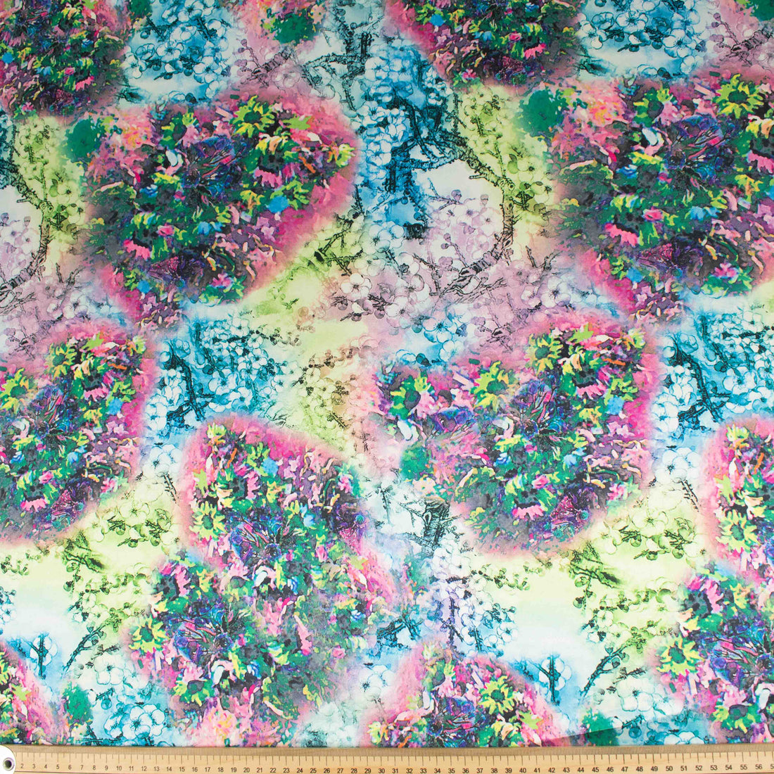 Printed Satin Design-62 Blue, Pink & Green Floral