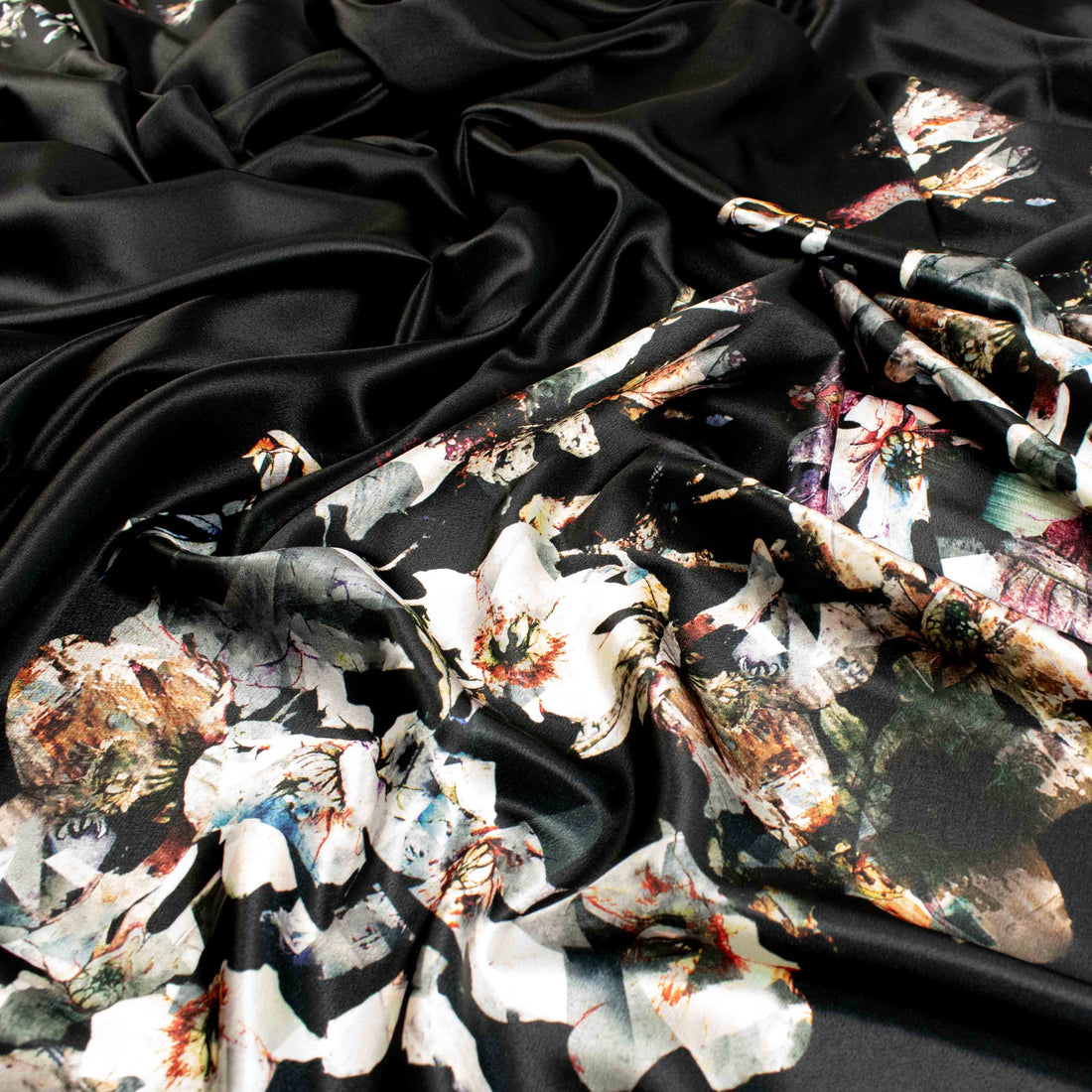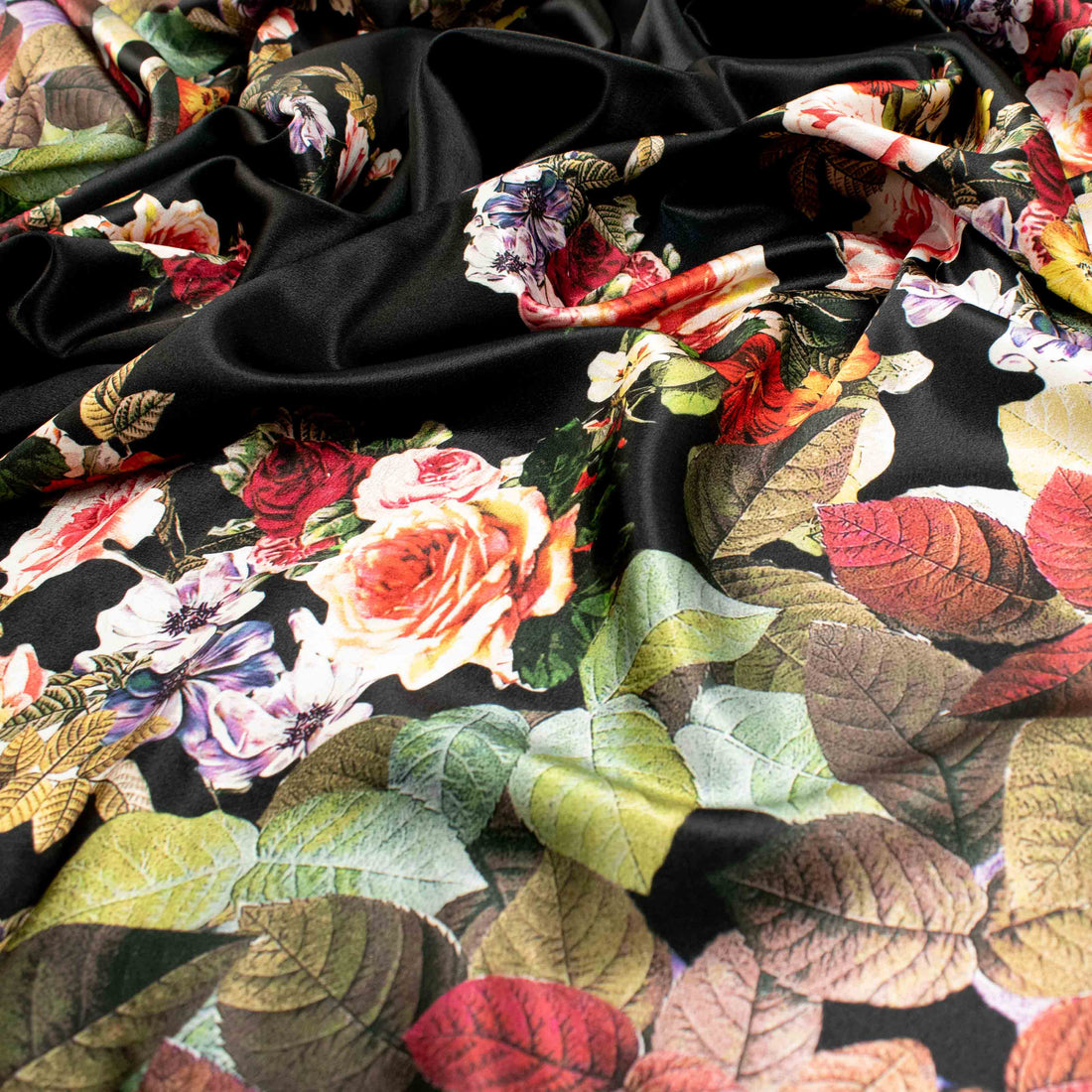 Digital Printed Satin Design-10 Border Printed Floral & Leaves on Black