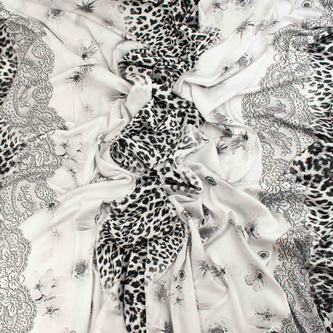 Digital Printed Satin Design-3 Border Printed White Floral on White