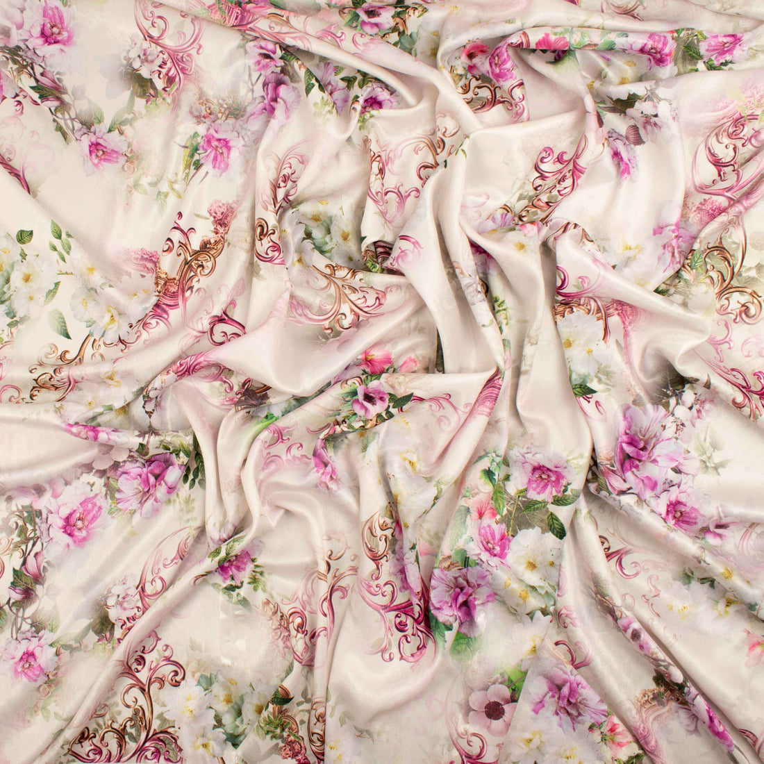 Digital Printed Satin Design-19 Pink Floral on Ivory