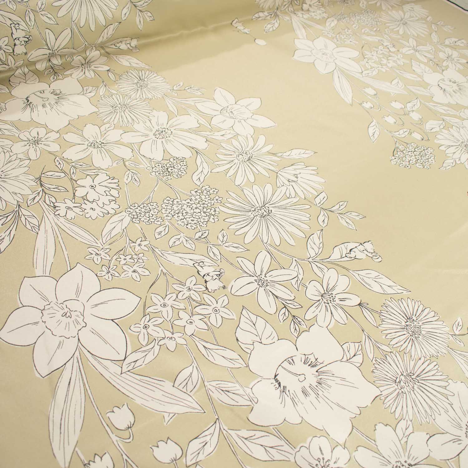 Beige Flower Vines on Green