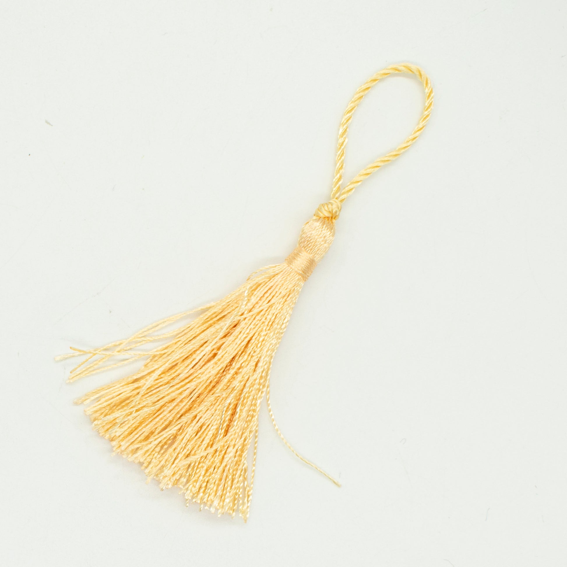 A large range of polyester/rayon tassels which are silky and are vividly coloured. Great for DIY projects. It can be used to as a pull for necklaces, bracelets, bookmarks, fans, earrings and gift bags, etc. Can also be used for curtains, clothing, swags and tails as well as a trimming for lampshades.