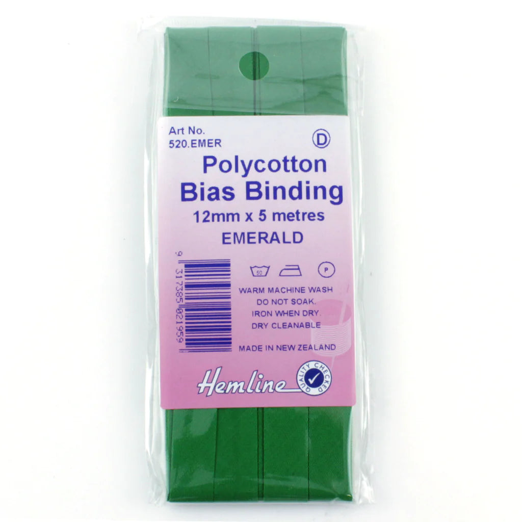 Hemline Polycotton Bias Binding - EMERALD 12MM X 5M
