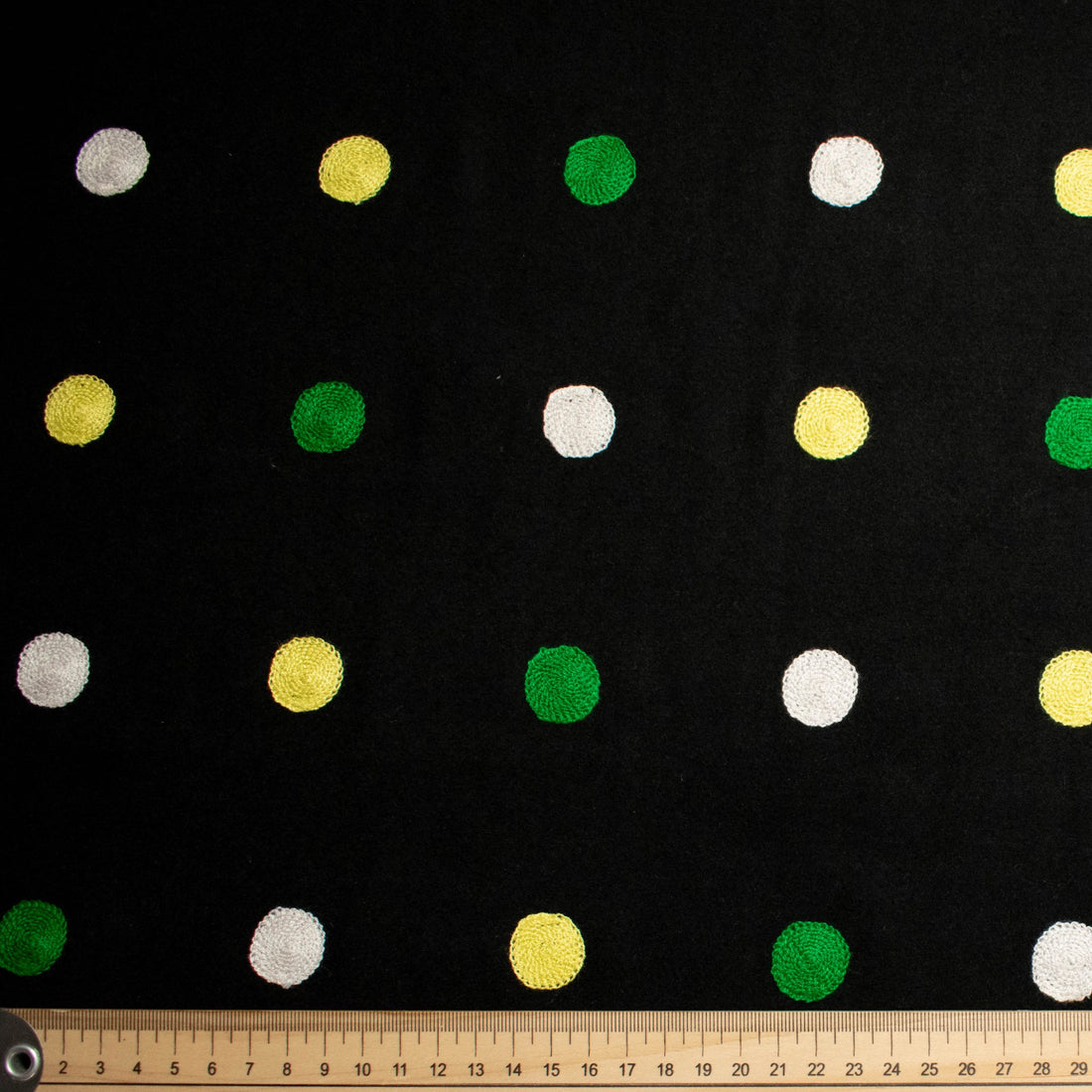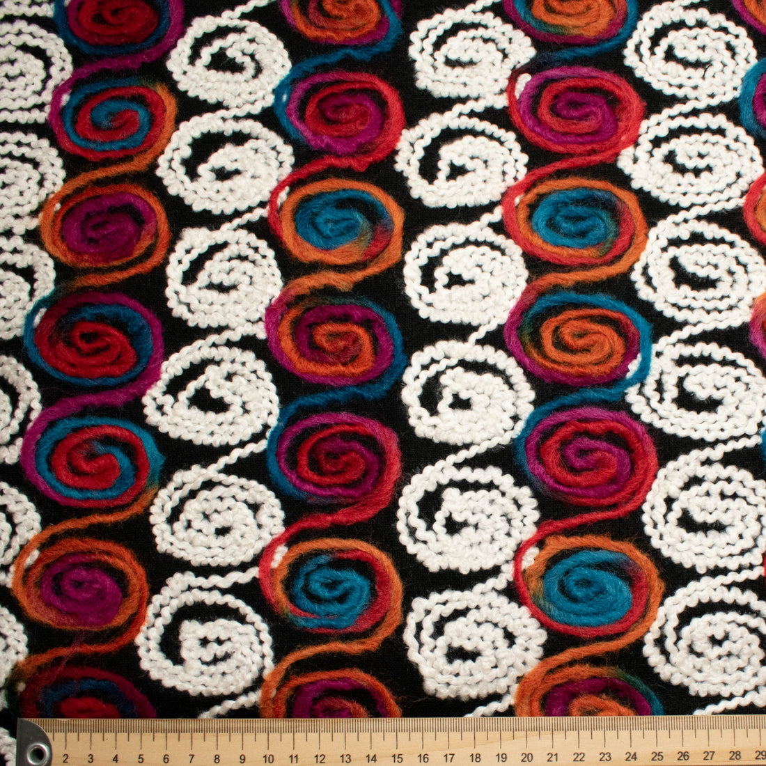 Content: 100% Poly Width: 59”/150cm Wool melton suiting fabric with embroidery. Ideal for coats, jackets,...
