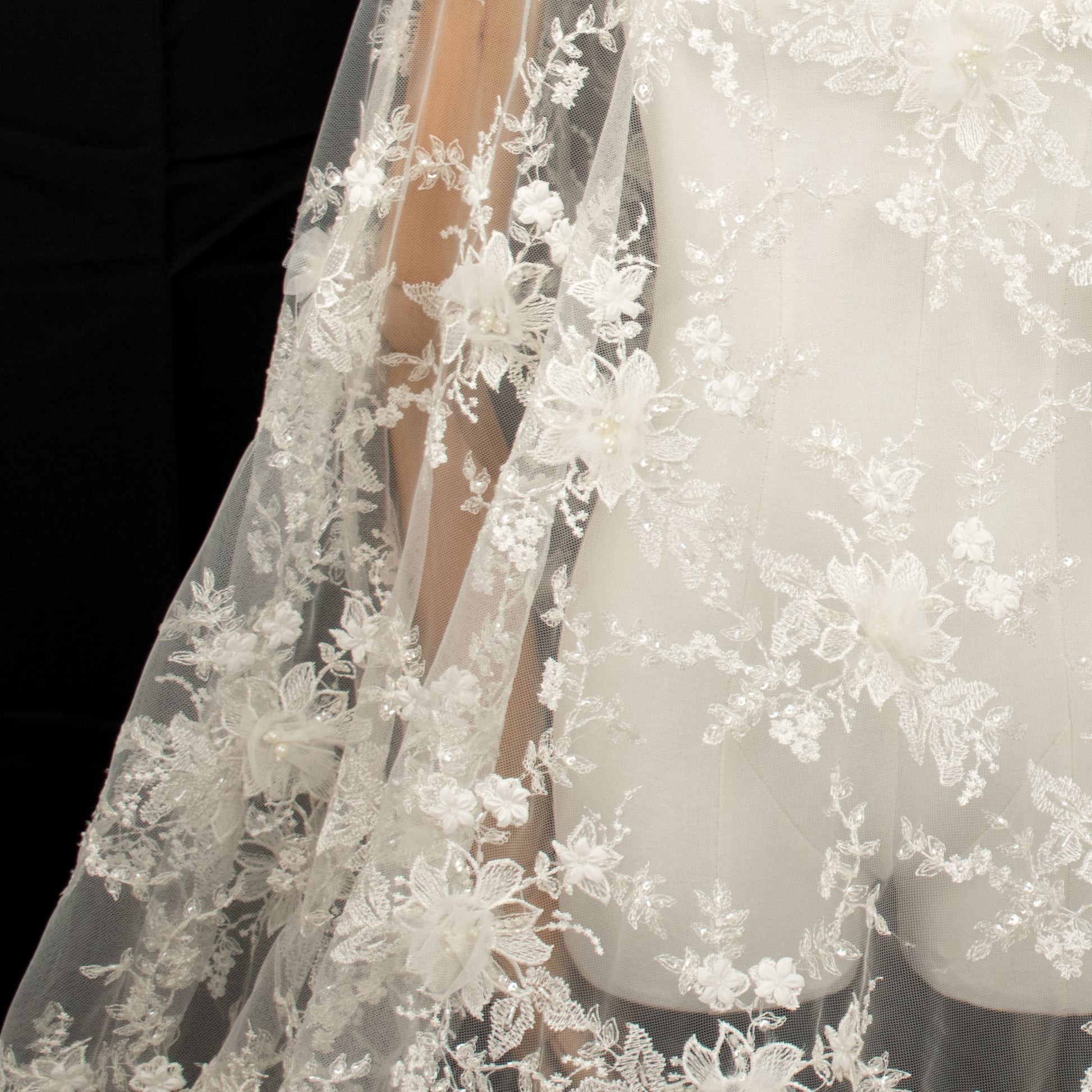3D Flower Pearl Beaded Embroidery Lace Ivory Design-14