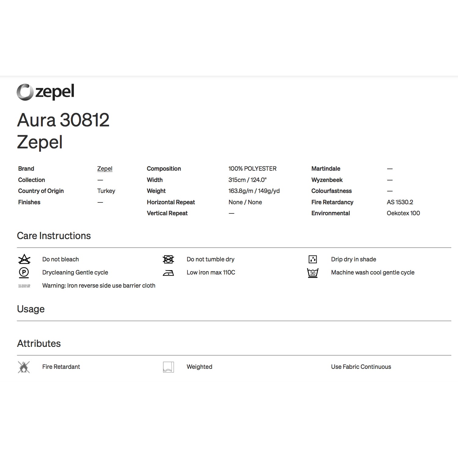 Attributes: Use Fabric Continuous, Weighted, Fire Retardant