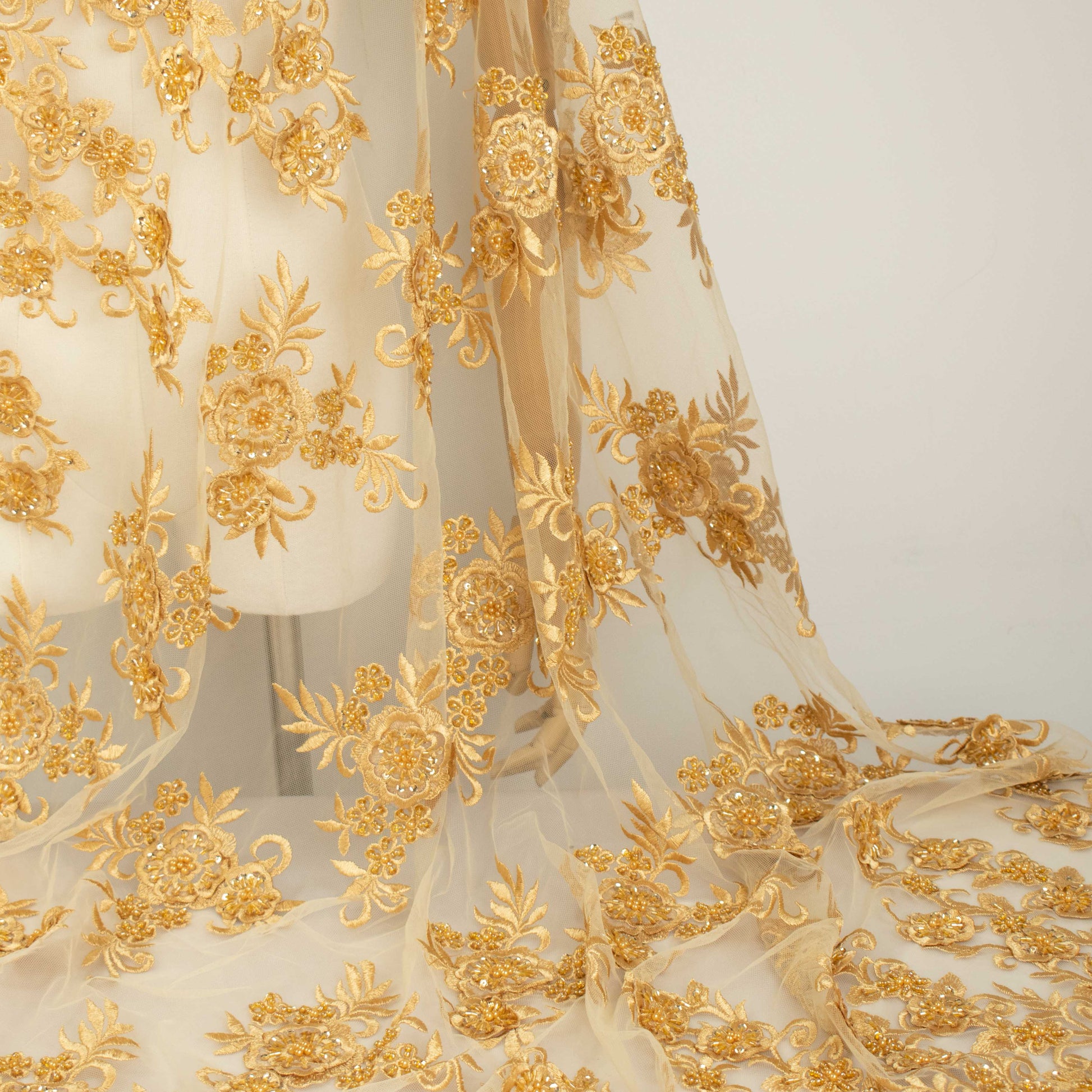 Beaded Damante Embroidery 3D Flower Lace Gold