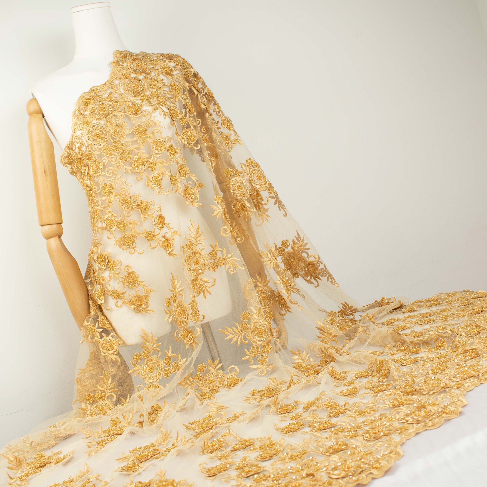 Our collection of couture laces has everything from light embroidered, glitter laces to beaded and sequinned designs. Perfect for bridal, cocktail, evening wear and for all your special occasions. Choose from basic bridal colours, muted golds and ivory to more vibrant shades of teal, burgundy, pink, royal blue or the more traditional black.