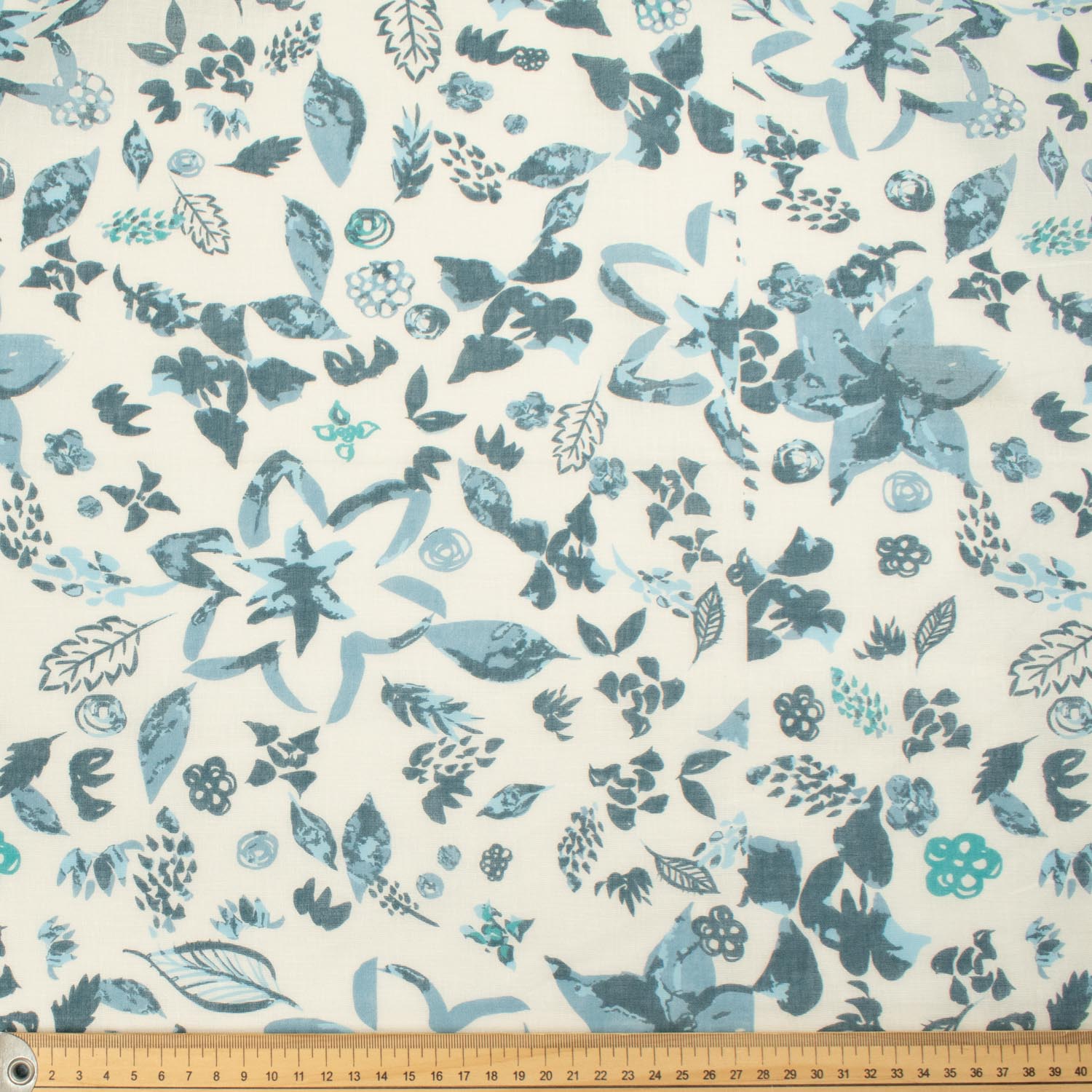 Border Printed Cotton Voile Design-16 Big White Flowers on Blue/Grey Blue Florals on White
