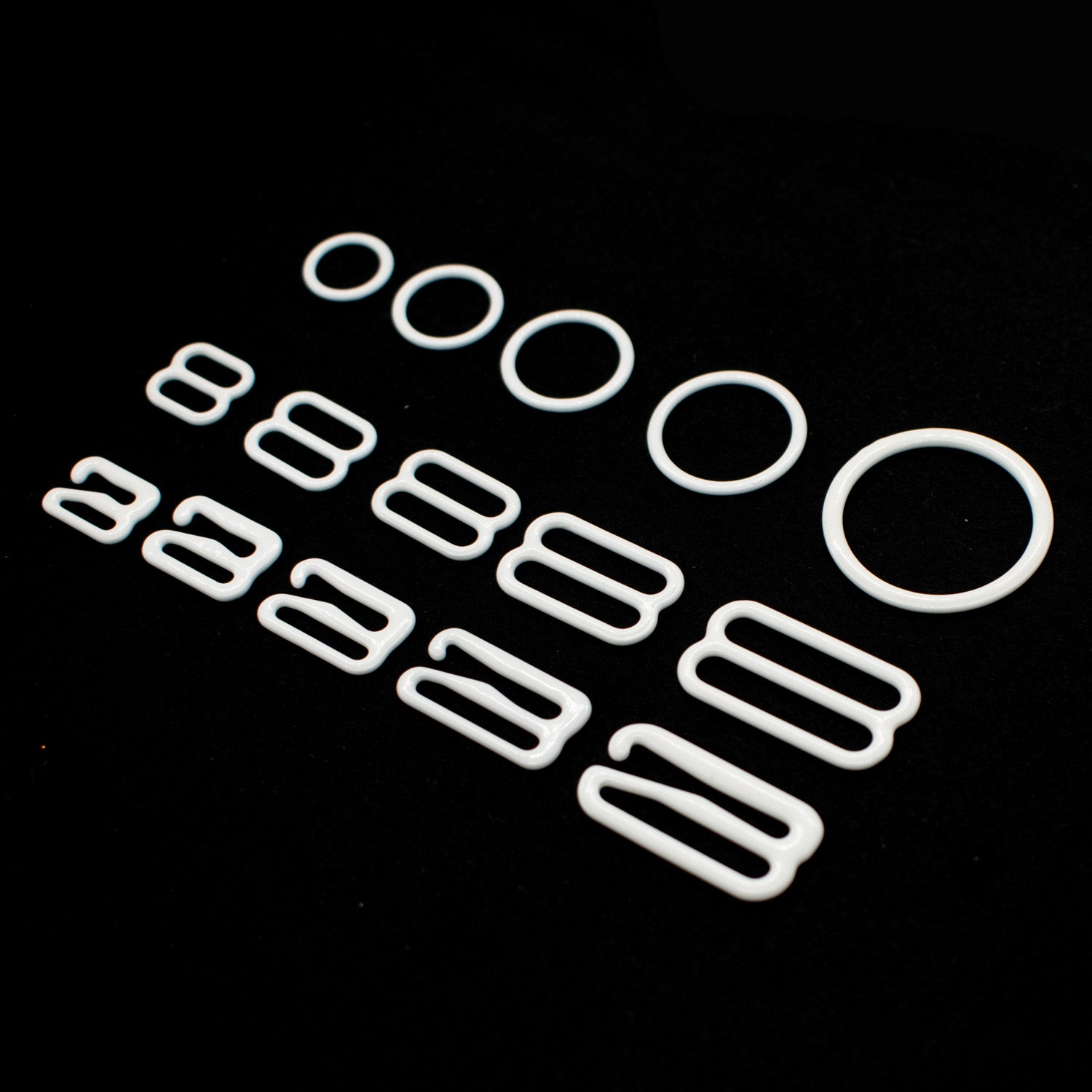 Our Bra Strap Ring, Slider and adjustor Hook are made from high-quality, rust-resistant metal, ensuring durability and comfort. Available in a wide range of sizes, they are suitable for various bra strap widths and lingerie styles. They come in 4 colors (White, Black, Silver, and Clear).