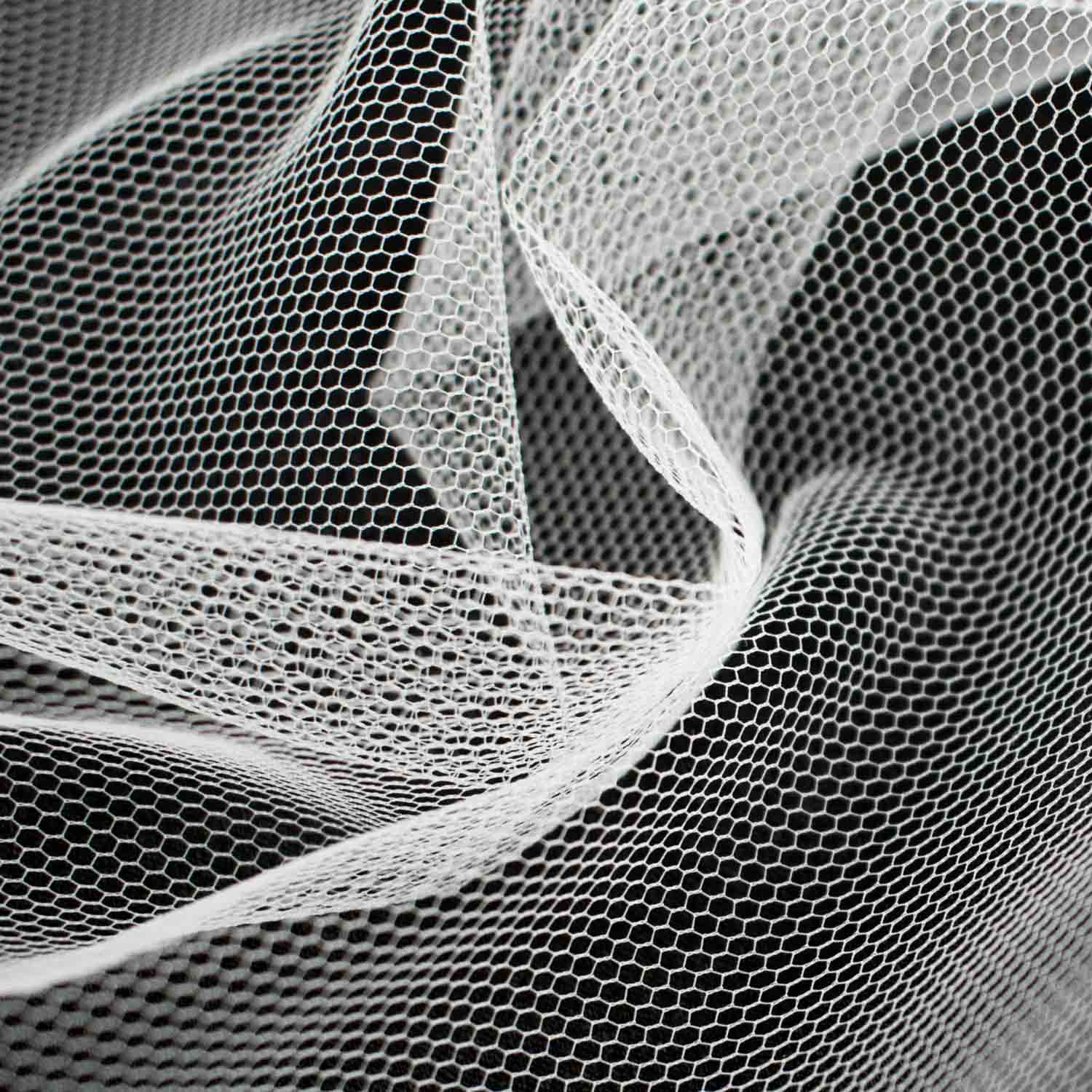 A 300cm wide Hexagonal Bridal Veiling Soft English Tulle also called Bridal Veiling. Our Bridal Tulle is available in traditional White, Silk White, Ivory, Pale Ivory and a few other selected colours. The Tulle is a free flowing and delicately soft against the skin.
