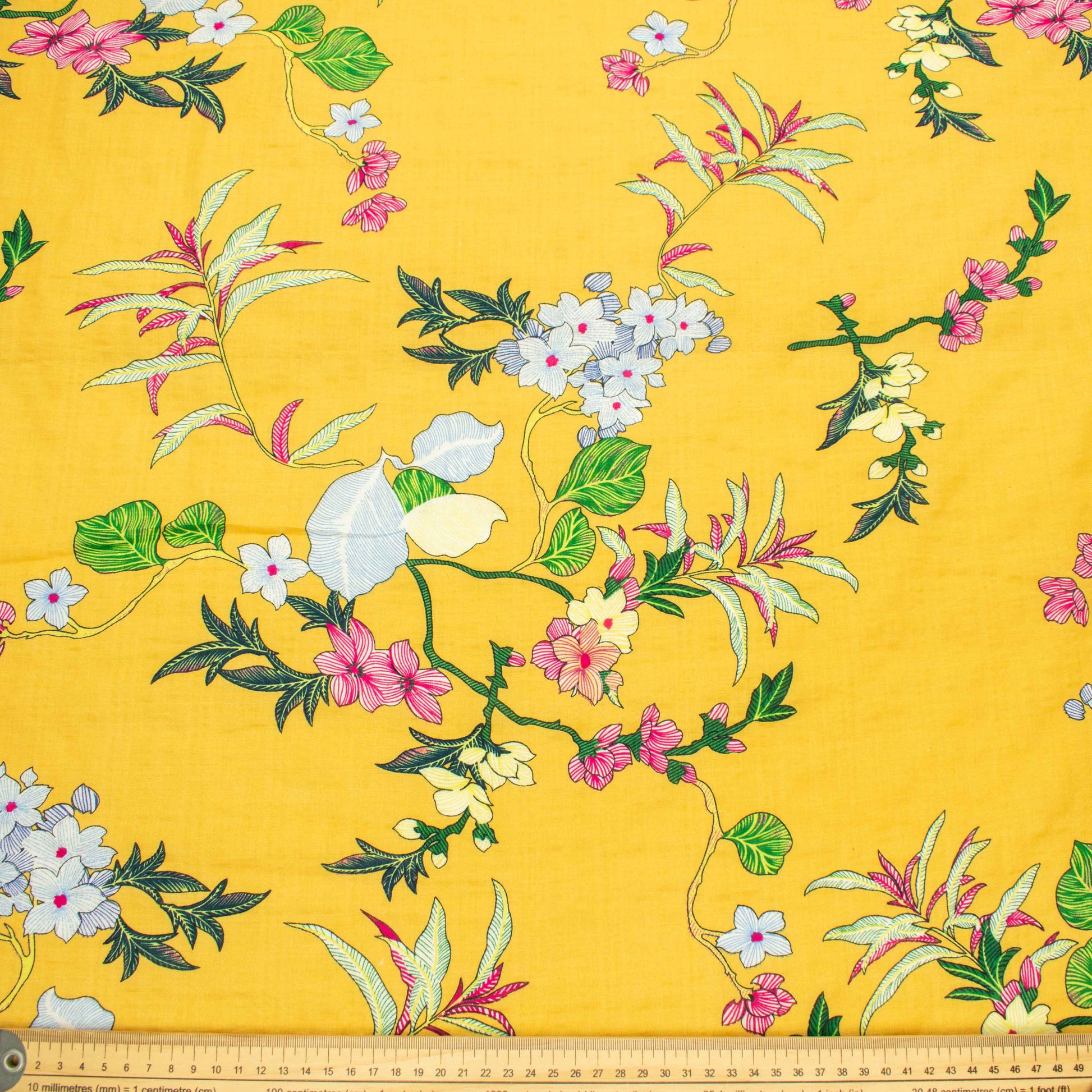Crinkle Cotton Prints Design-12 Flower on Yellow